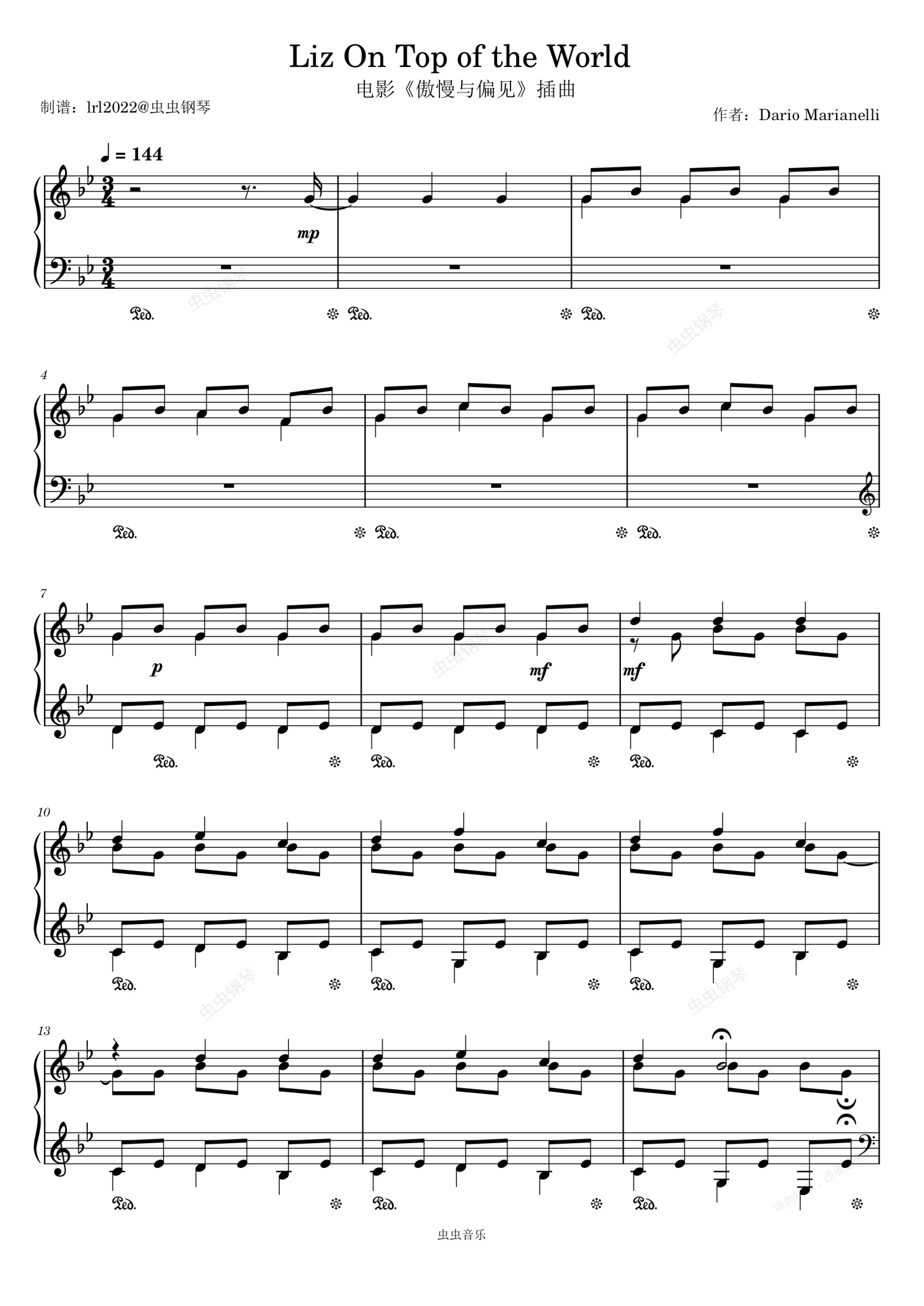钢琴谱:Liz On Top of the World - 电影《傲慢与偏见》插曲 - 钢琴独奏