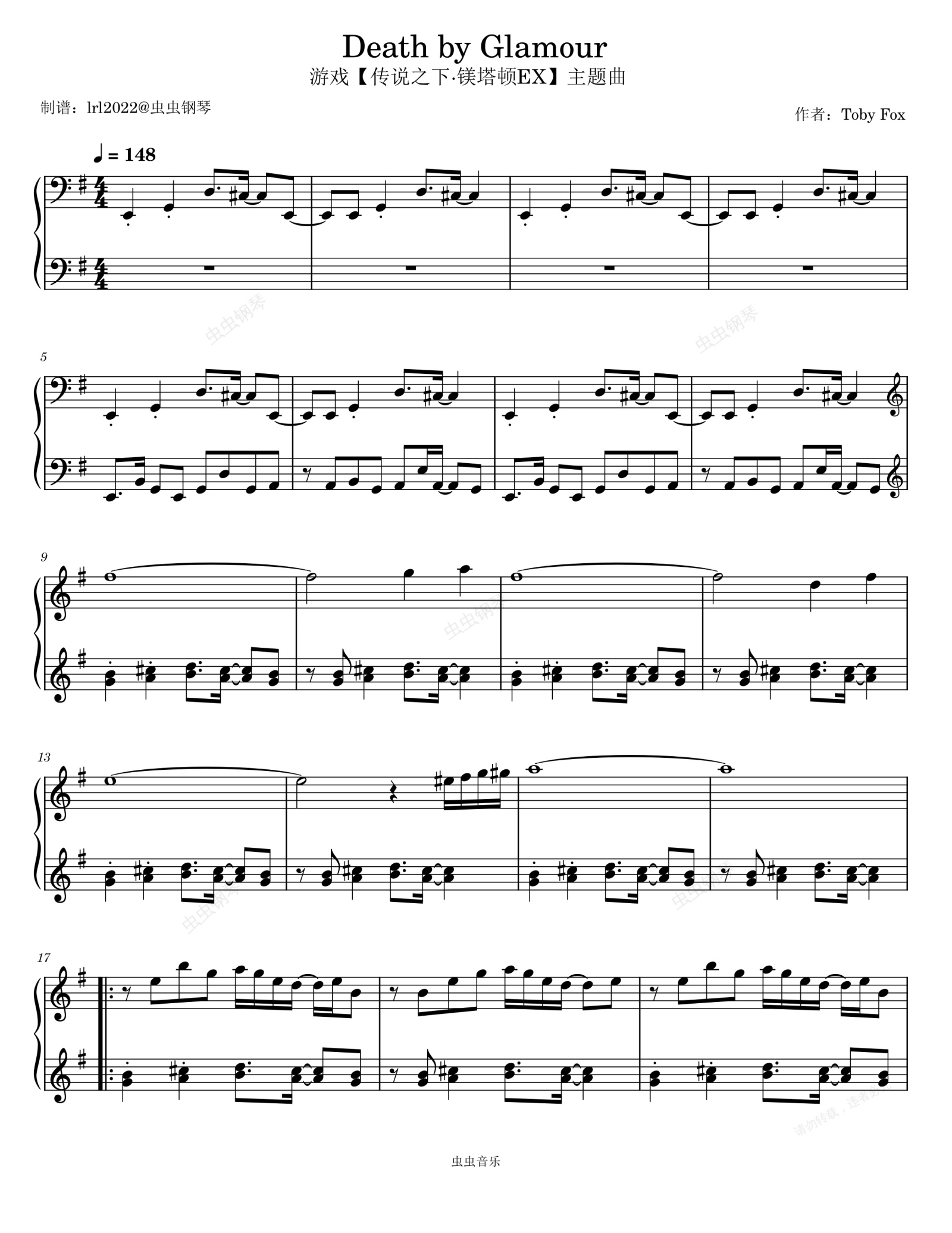 钢琴谱:Death by Glamour - 游戏【传说之下·镁塔顿EX】主题曲 - 钢琴独奏