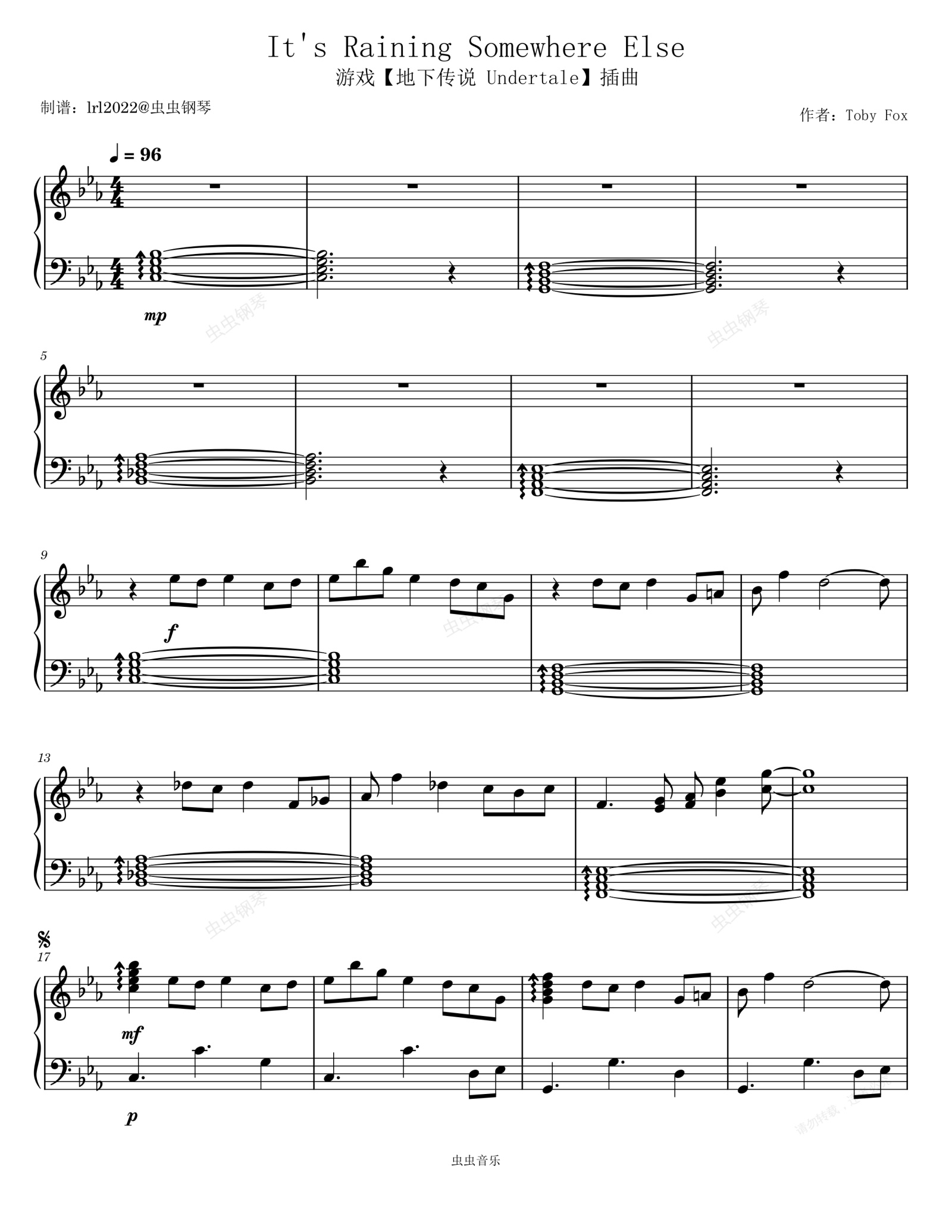 钢琴谱:It's Raining Somewhere Else - 游戏【地下传说】插曲 - 钢琴独奏