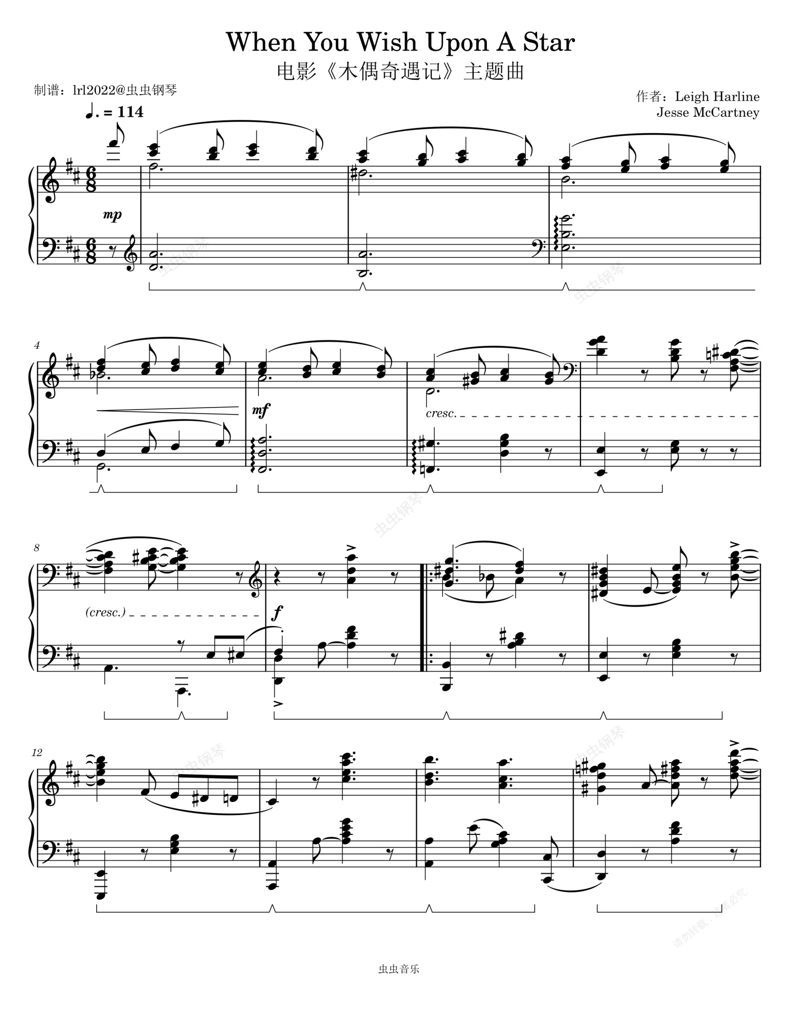 钢琴谱:When You Wish Upon A Star - 电影《木偶奇遇记》主题曲 - 钢琴独奏