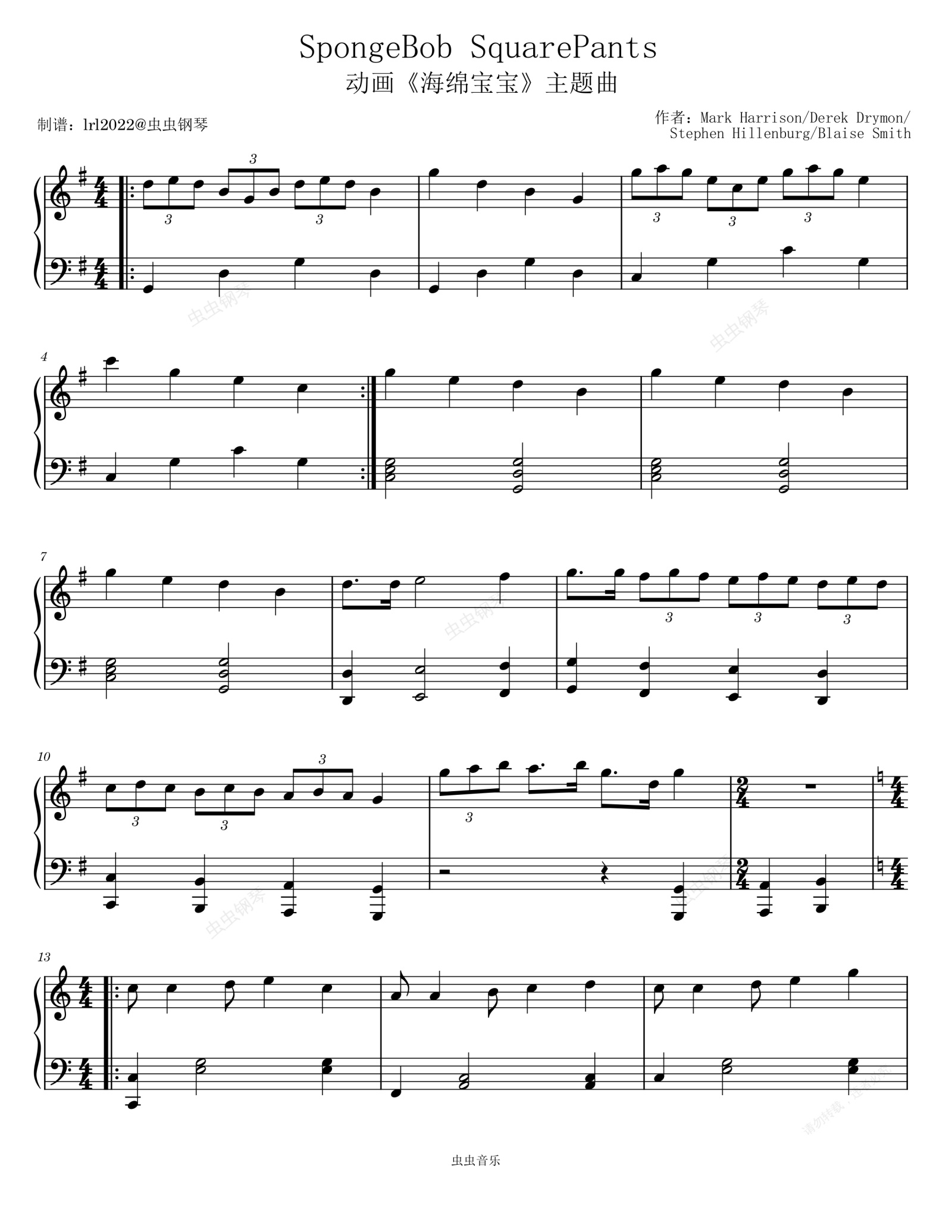 钢琴谱:SpongeBob SquarePants - 动画《海绵宝宝》主题曲集合 - 钢琴独奏