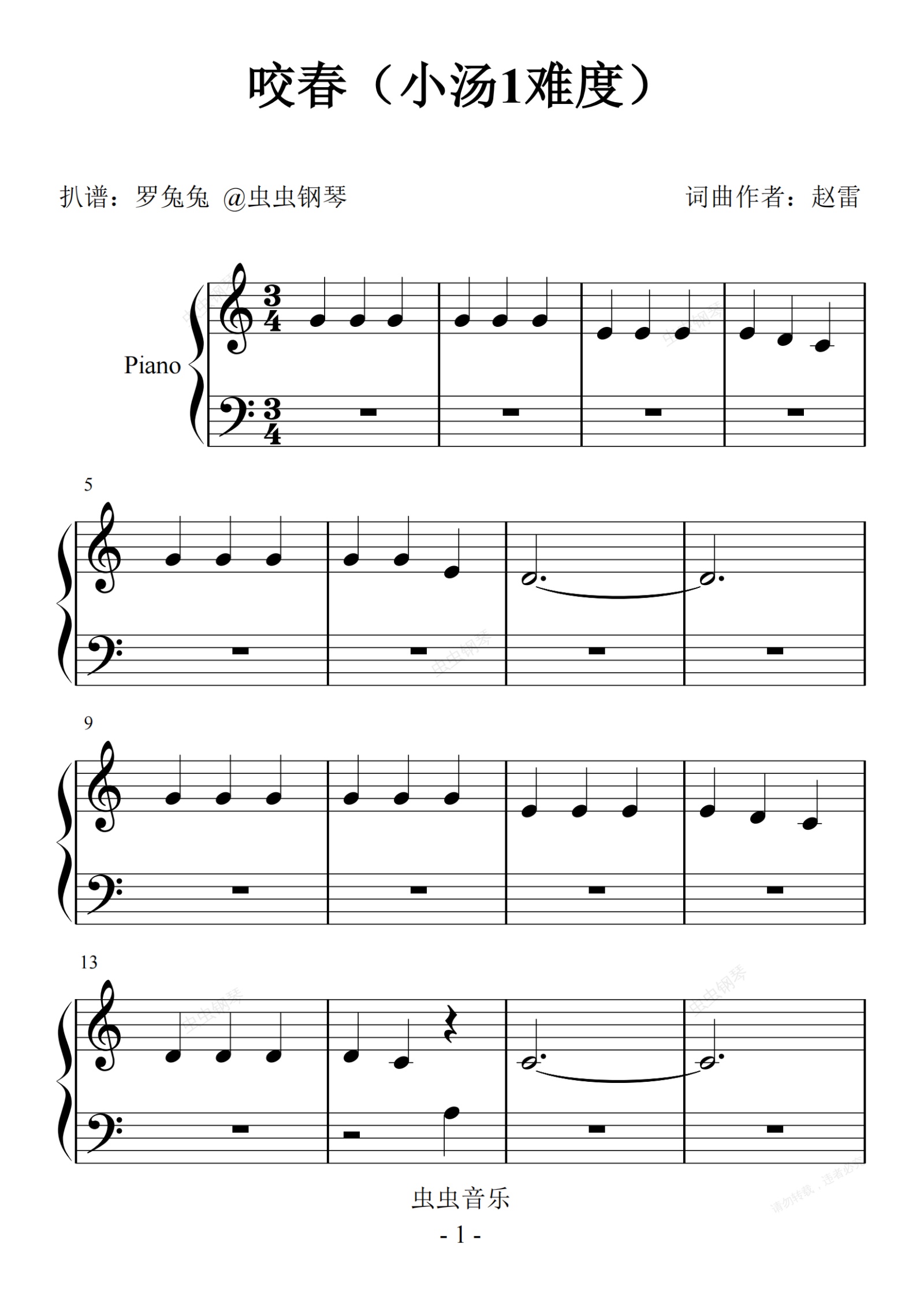 钢琴谱:咬春(小汤1难度)