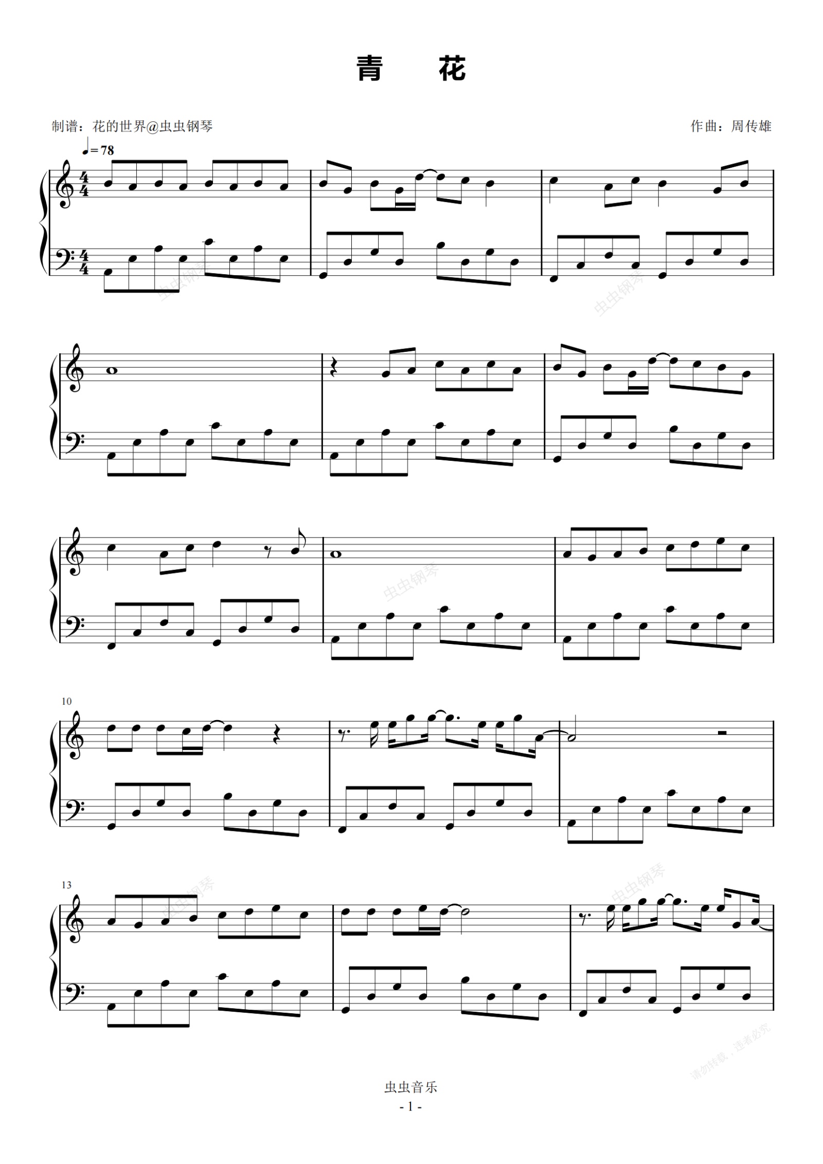 钢琴谱:青花 C调简易版 周传雄 流行经典