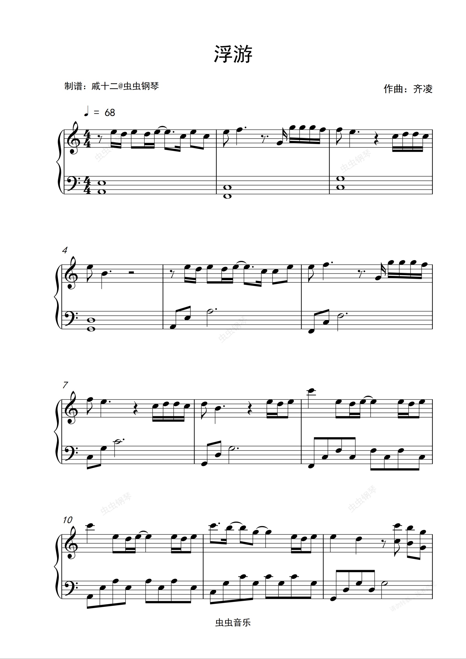 钢琴谱:浮游《护心》主题曲-C调简单版