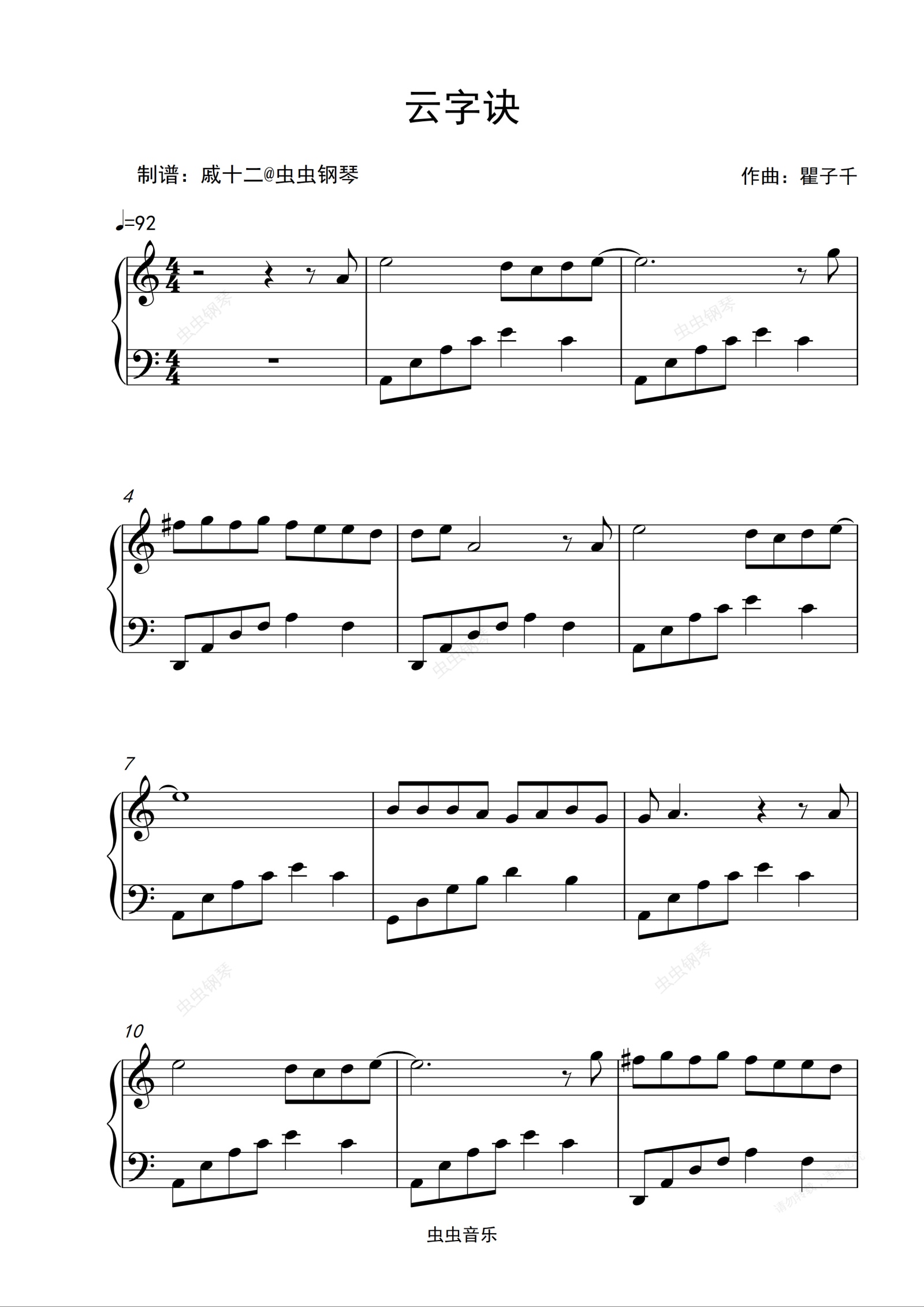 钢琴谱:云字诀《云襄传》主题曲-C调简单版