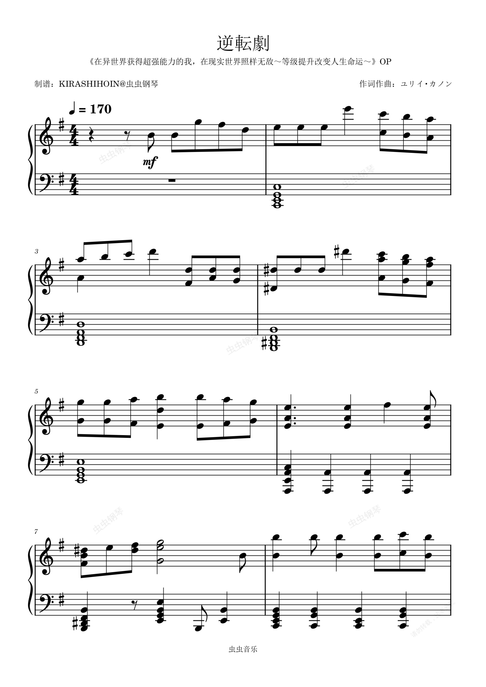 钢琴谱:逆転劇(《在异世界获得超强能力的我,在现实世界照样无敌~等级提升改变人生命运~》OP/片头曲)- 月詠み