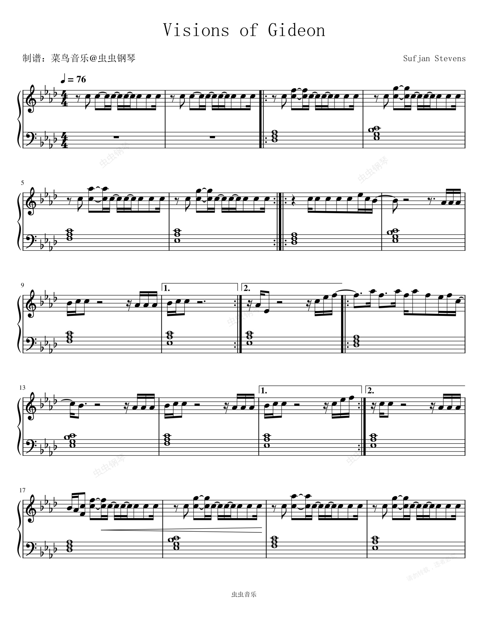 钢琴谱:Visions of Gideon - Sufjan Stevens