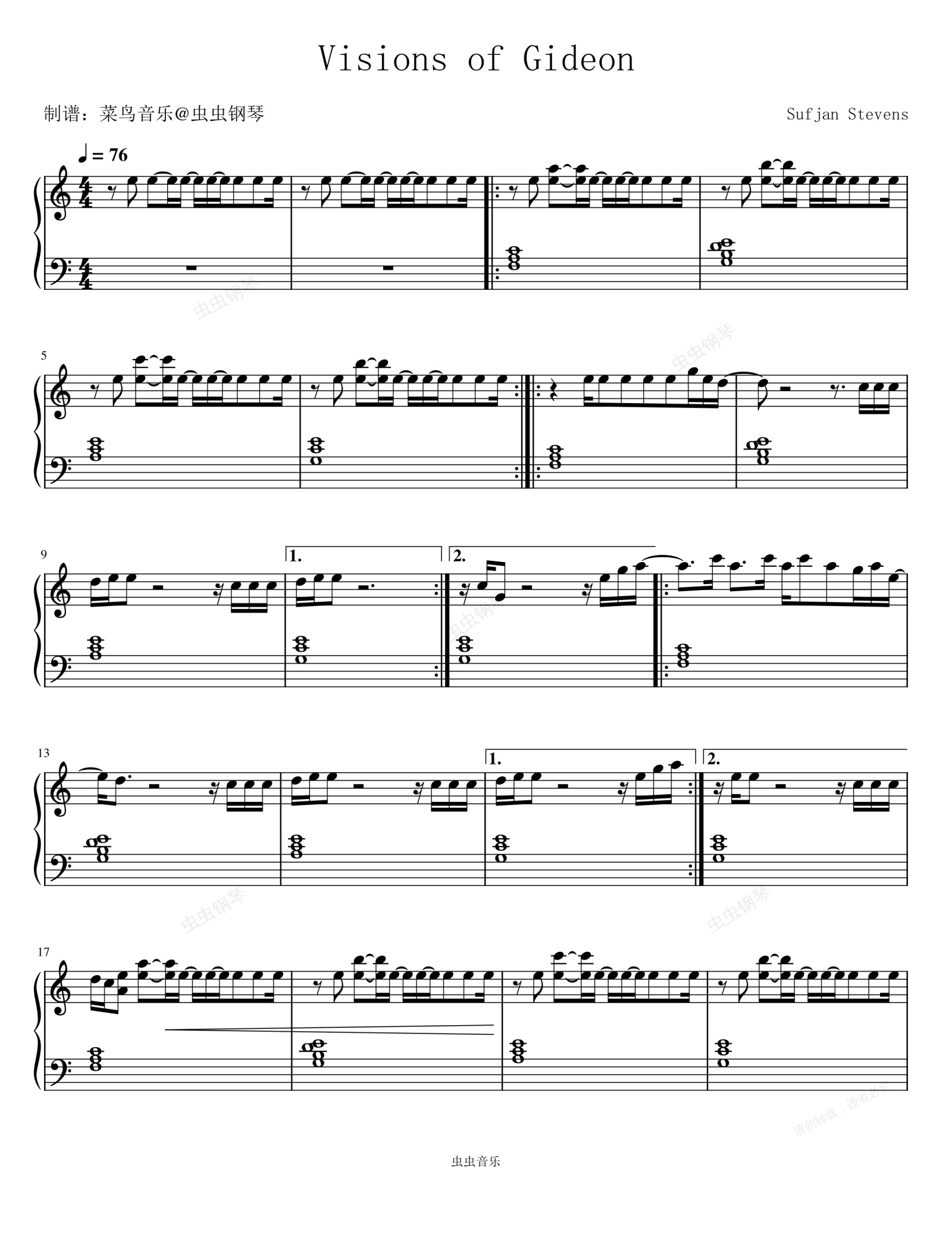 钢琴谱:Visions of Gideon - Sufjan Stevens