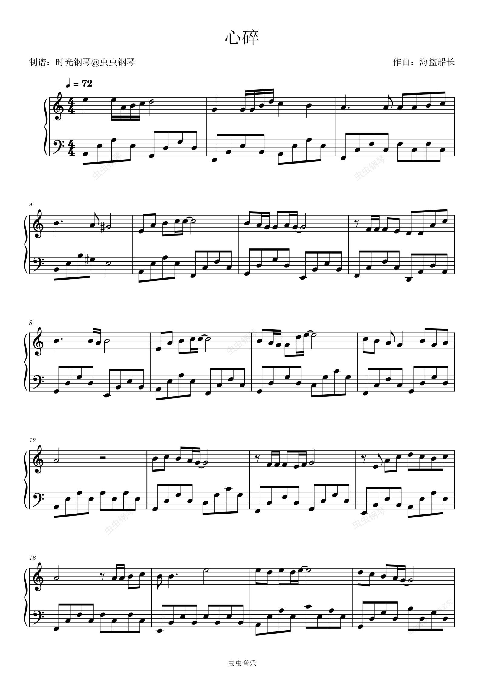 钢琴谱:心碎 易欣 简单动听