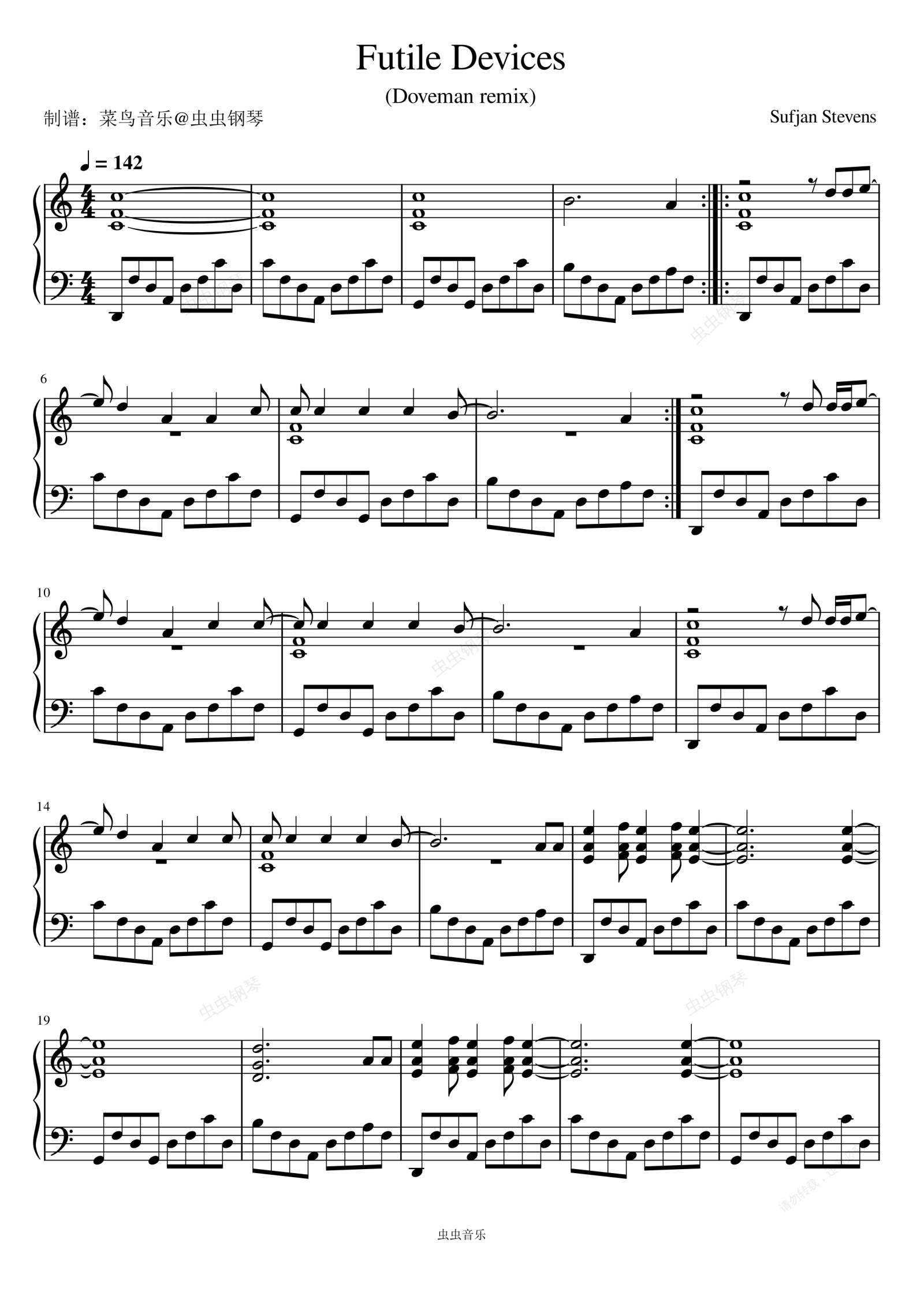 钢琴谱:Futile Devices (Doveman Remix) - Sufjan Stevens