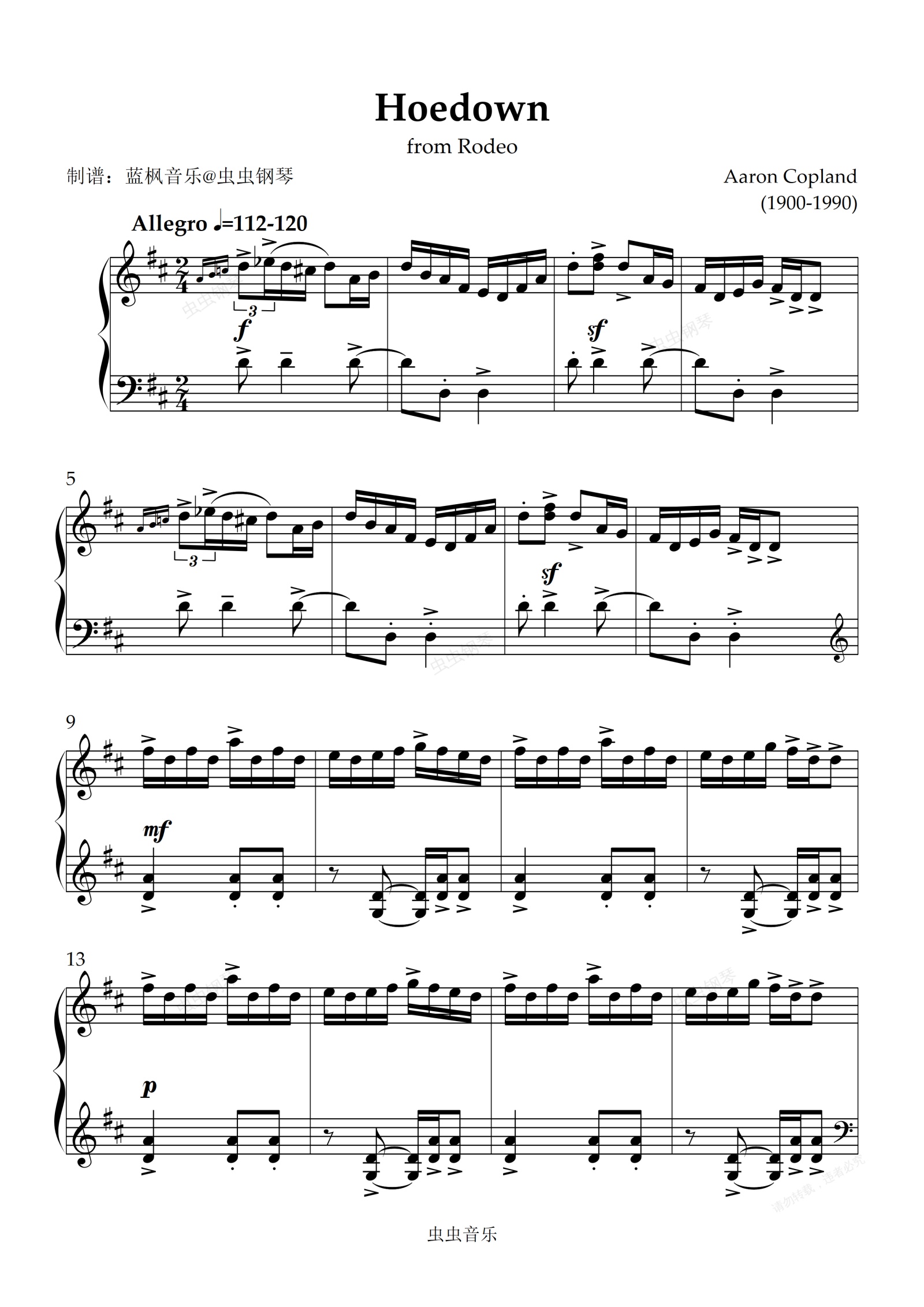 钢琴谱:Hoedown