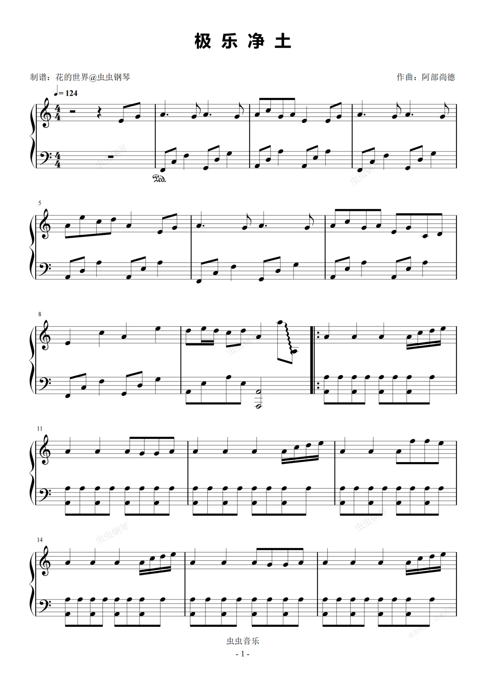 钢琴谱:极乐净土 C调简易 美依礼芽