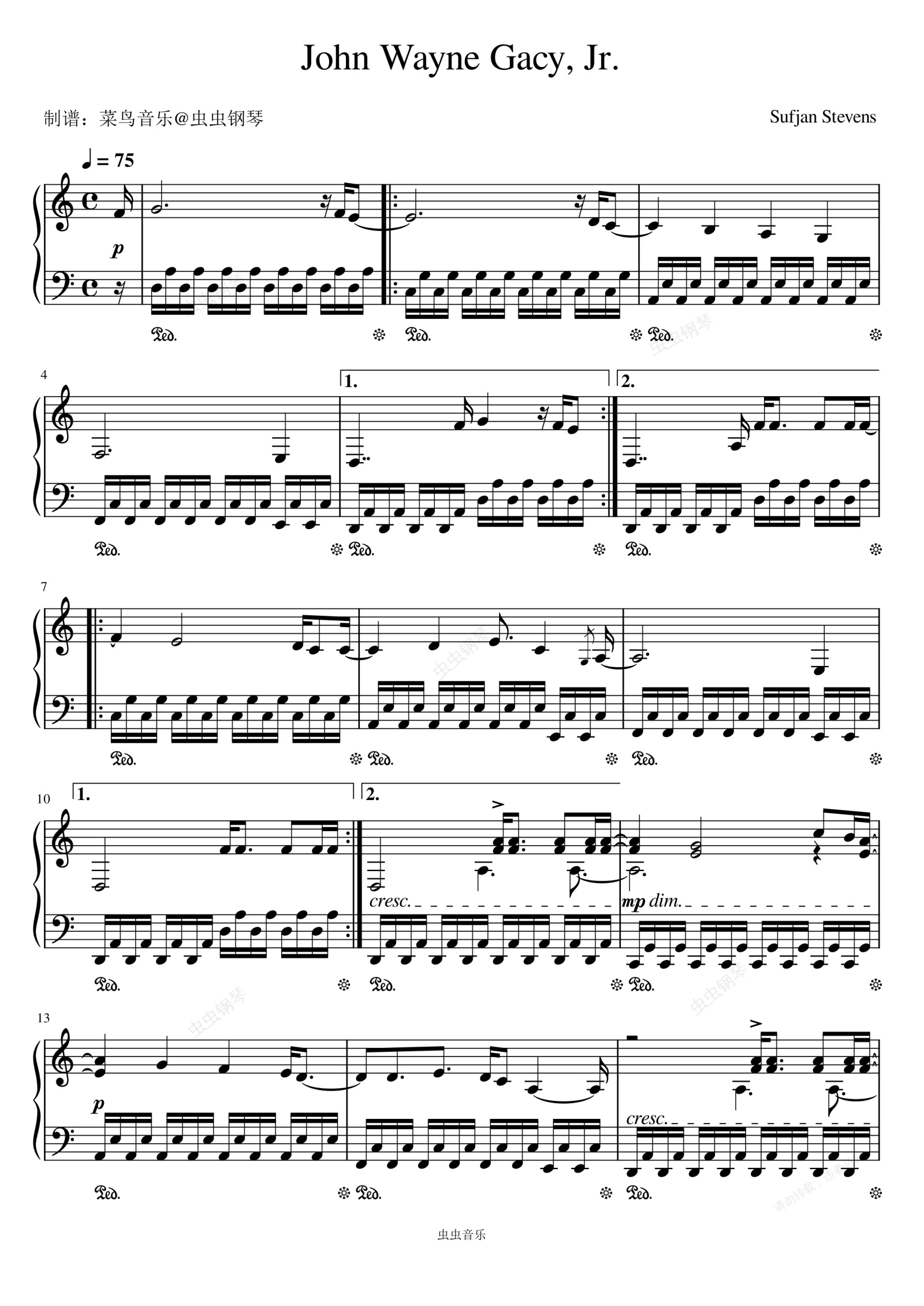 钢琴谱:John Wayne Gacy, Jr. - Sufjan Stevens