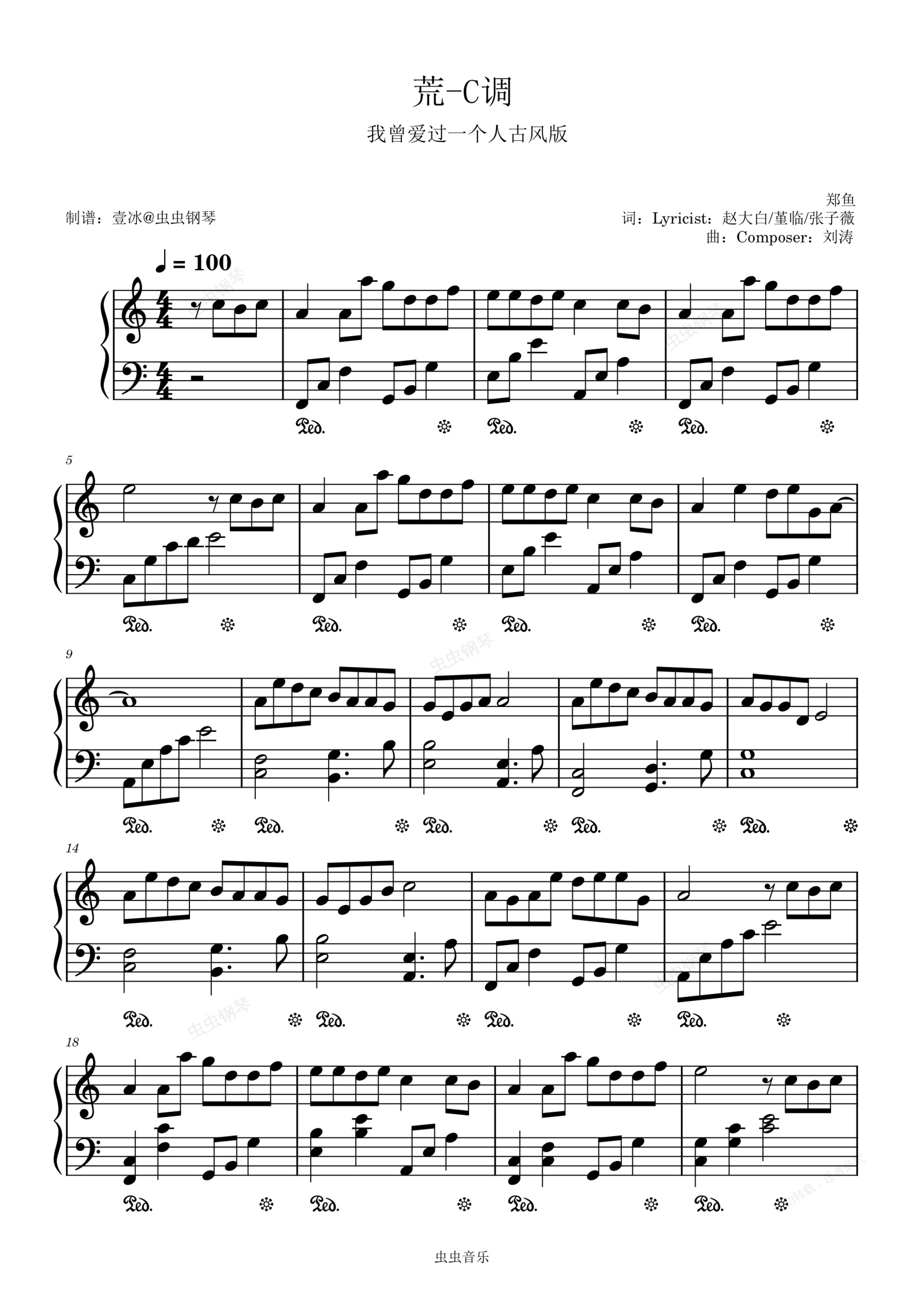 钢琴谱:【国风音韵】荒 简单易上手-C调
