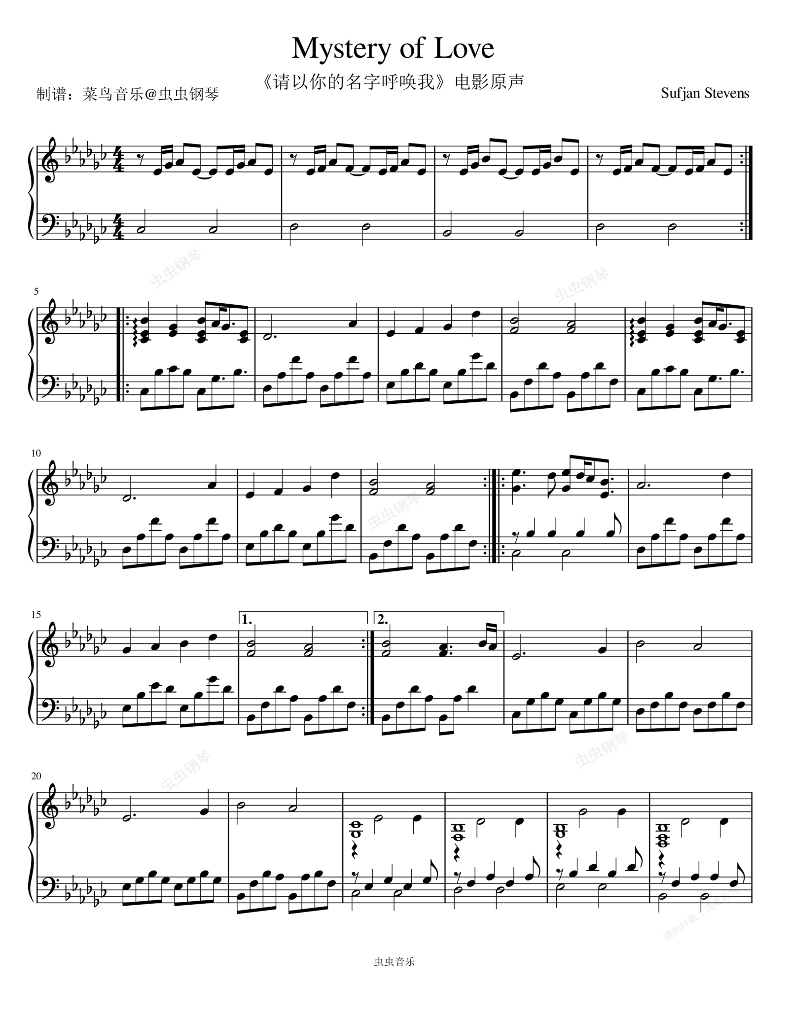 钢琴谱:Mystery of Love - Sufjan Stevens (《请以你的名字呼唤我》电影原声)