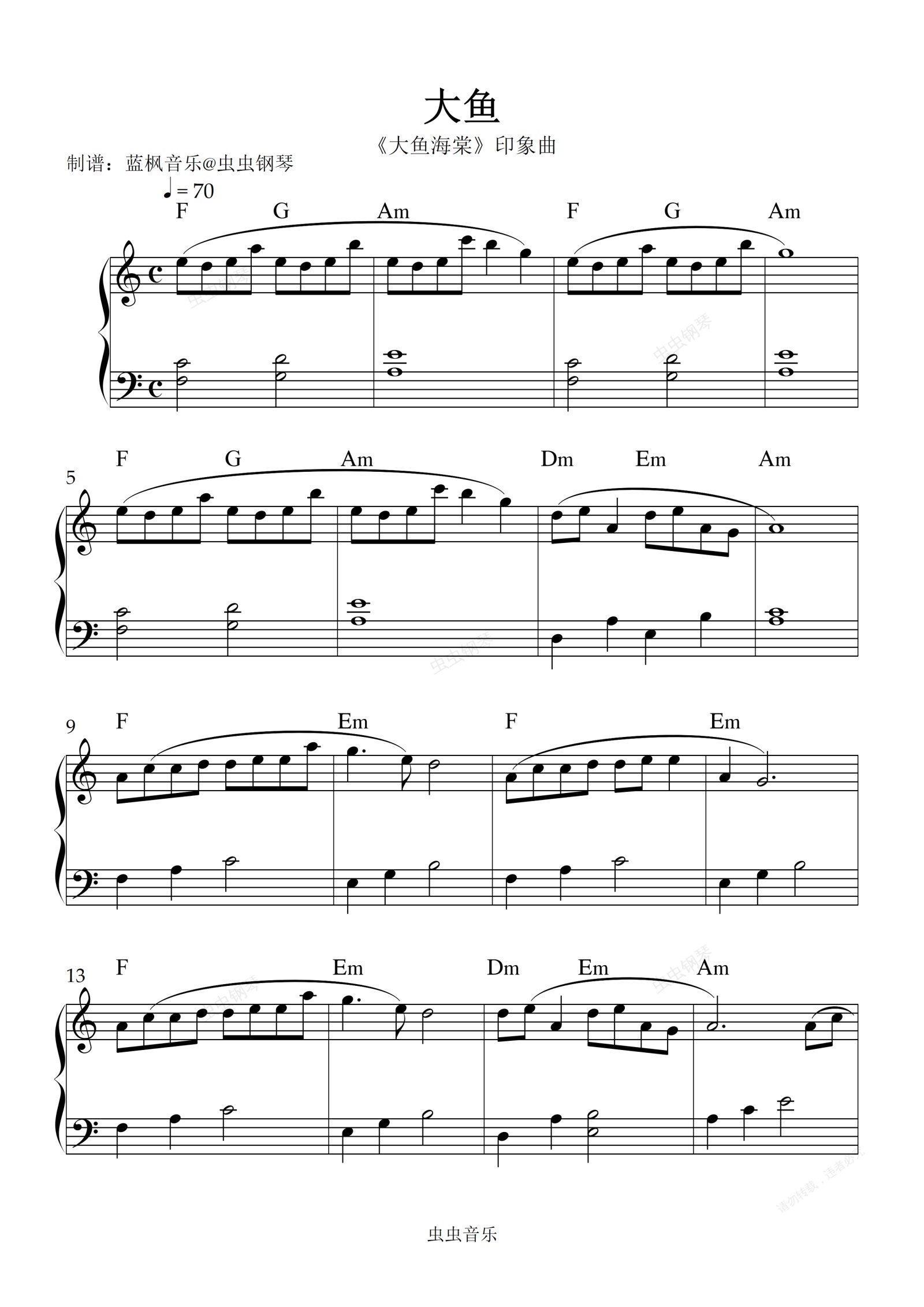 钢琴谱:大鱼