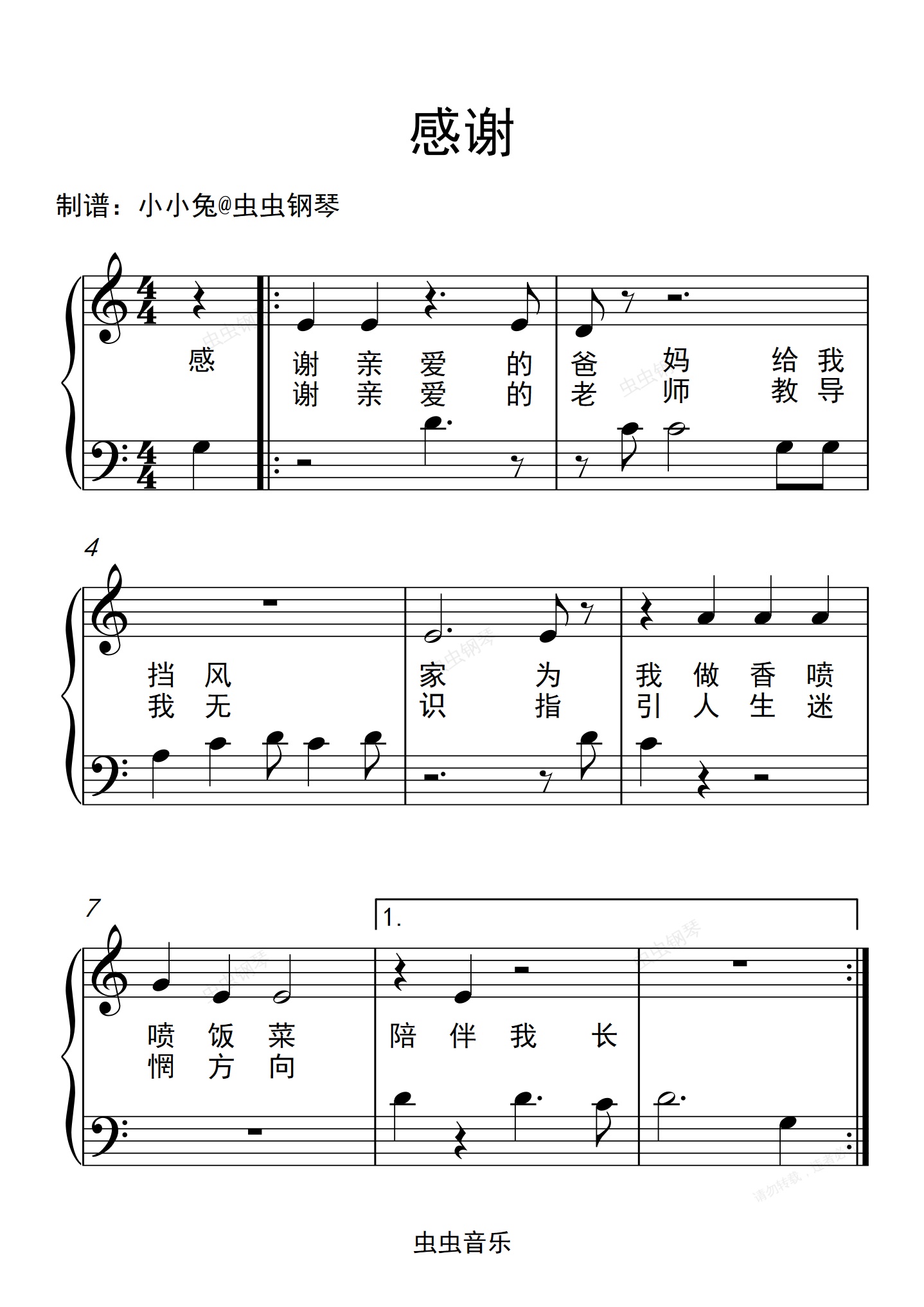 钢琴谱:感谢 儿童歌曲 小汤