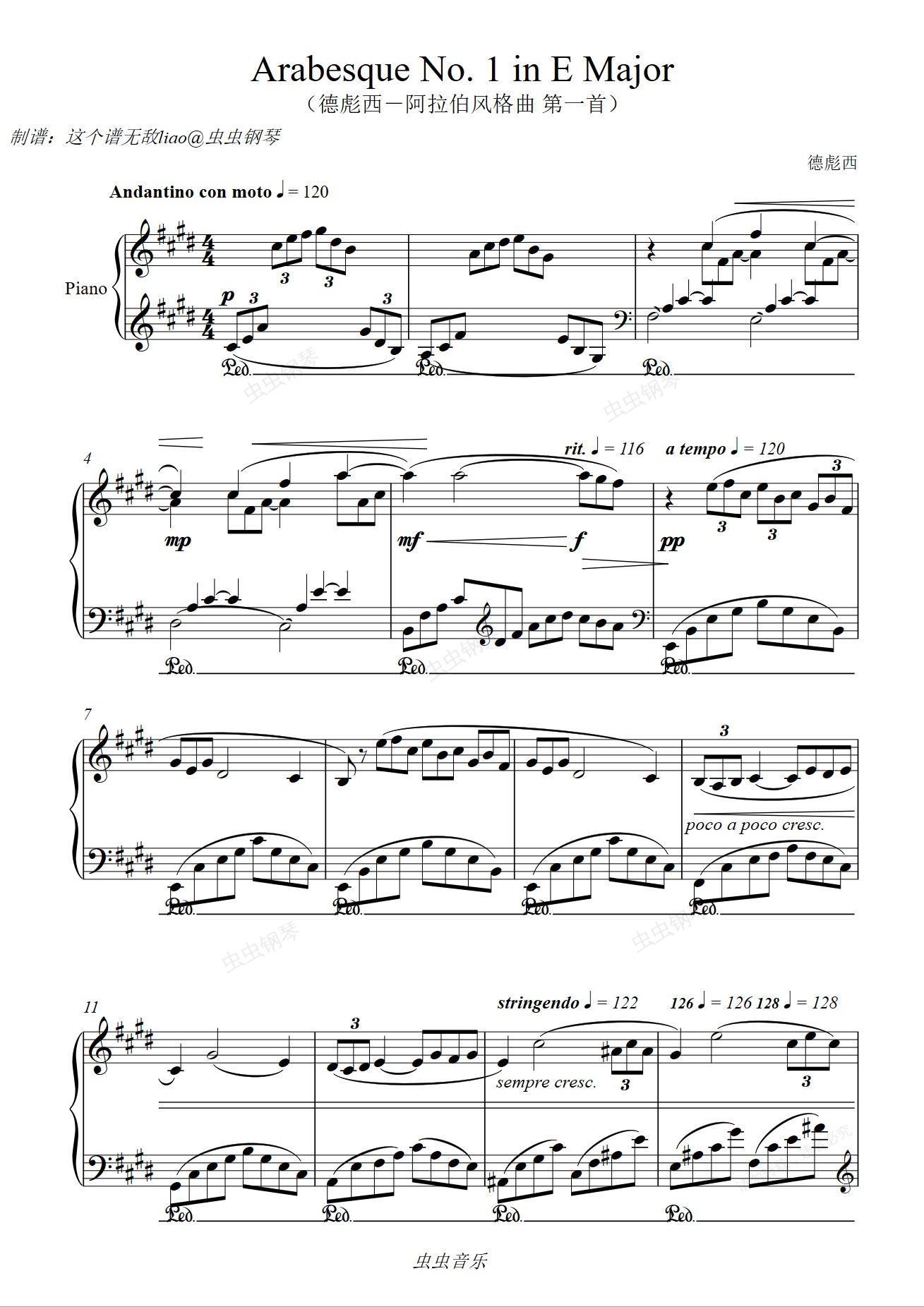 钢琴谱:Arabesque No. 1 in E Major——德彪西《阿拉伯风格曲no.1》