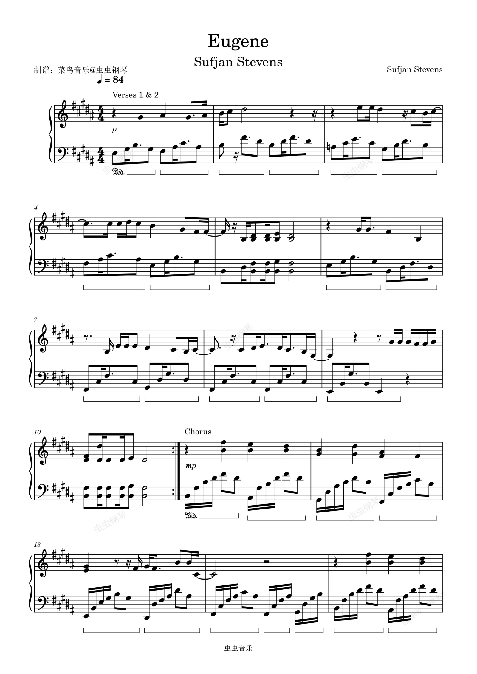 钢琴谱:Eugene - Sufjan Stevens