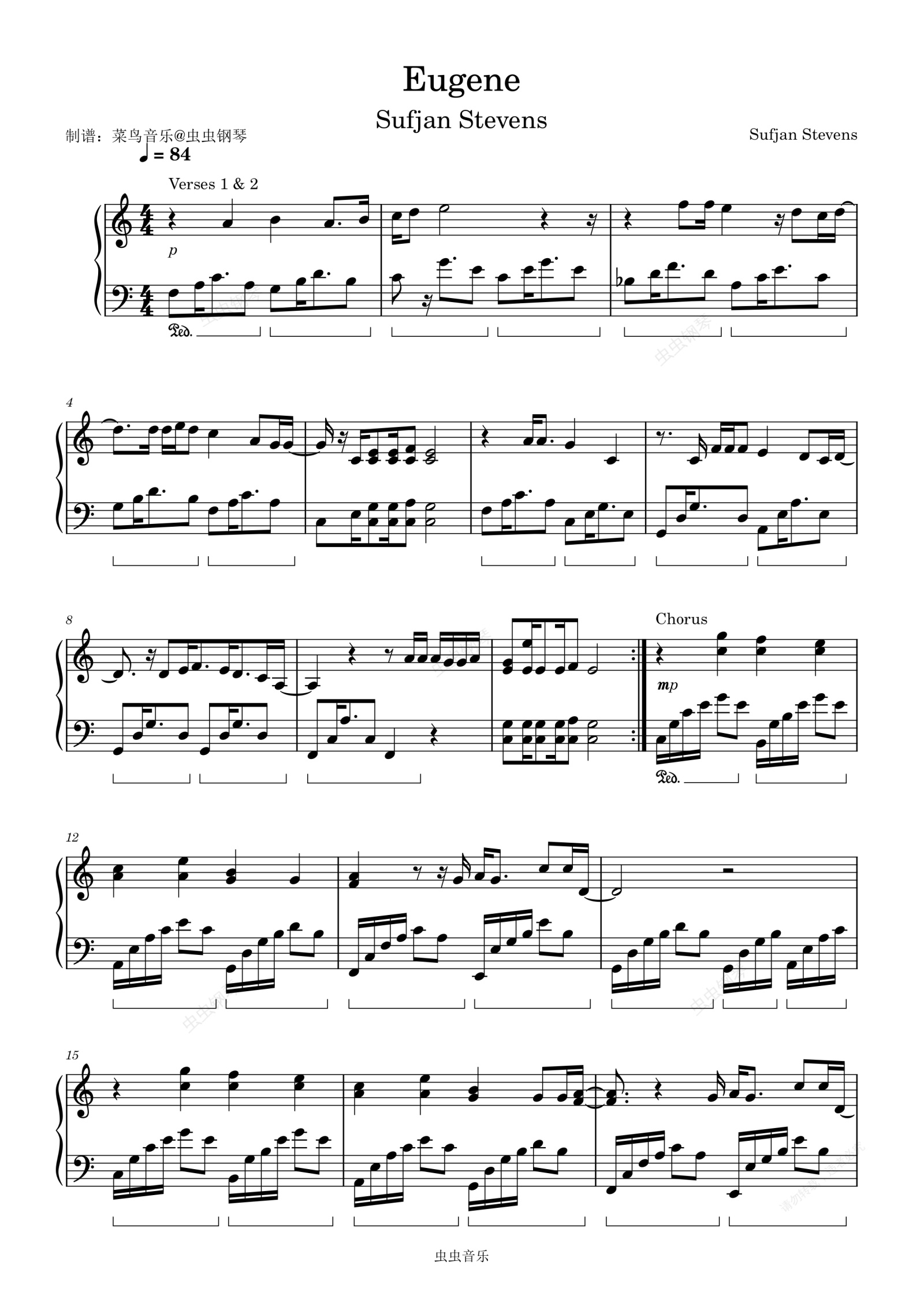 钢琴谱:Eugene - Sufjan Stevens