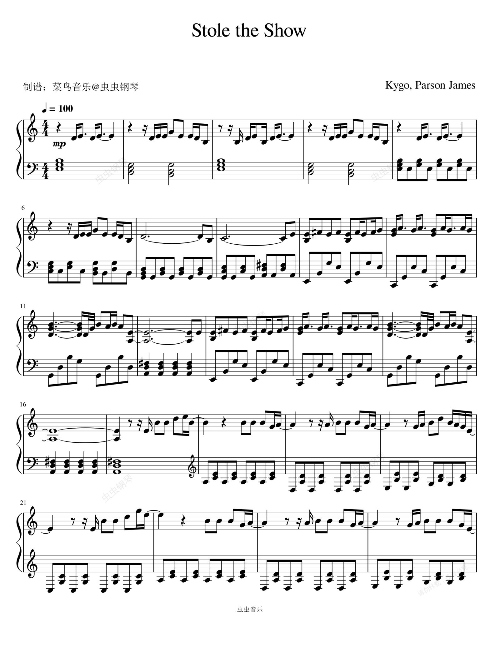 钢琴谱:Stole the Show - Kygo (凯戈)/Parson James