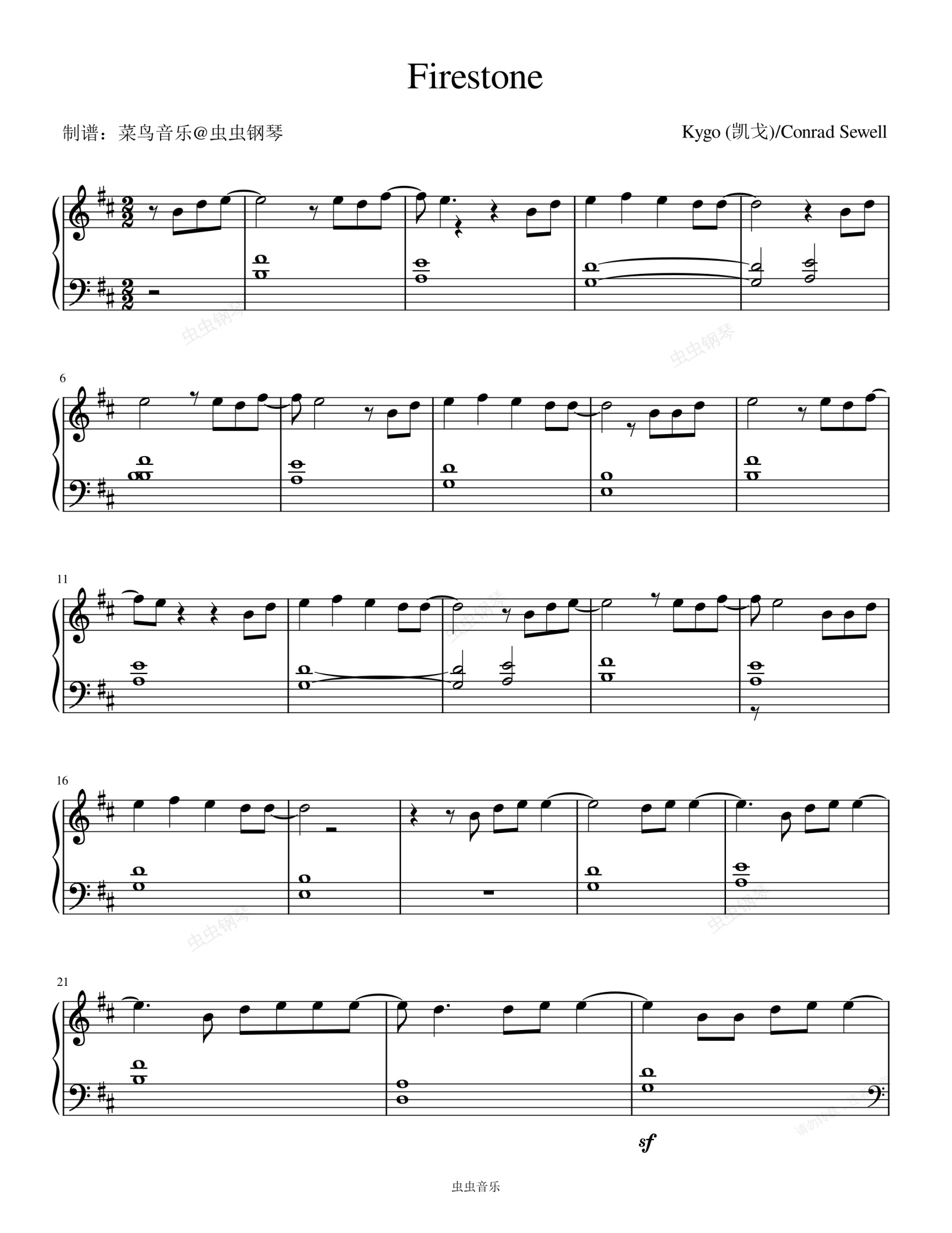 钢琴谱:Firestone - Kygo (凯戈)/Conrad Sewell