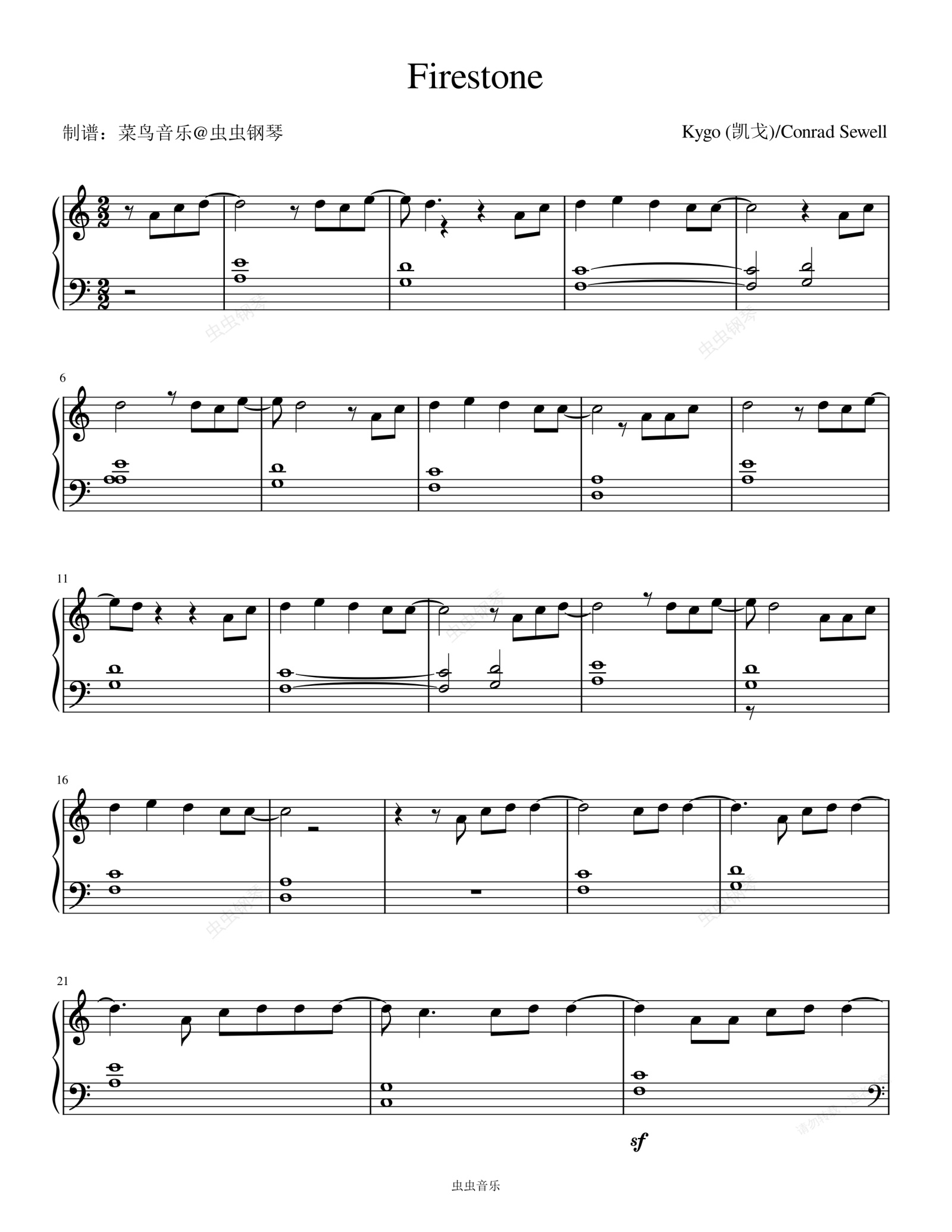 钢琴谱:Firestone - Kygo (凯戈)/Conrad Sewell