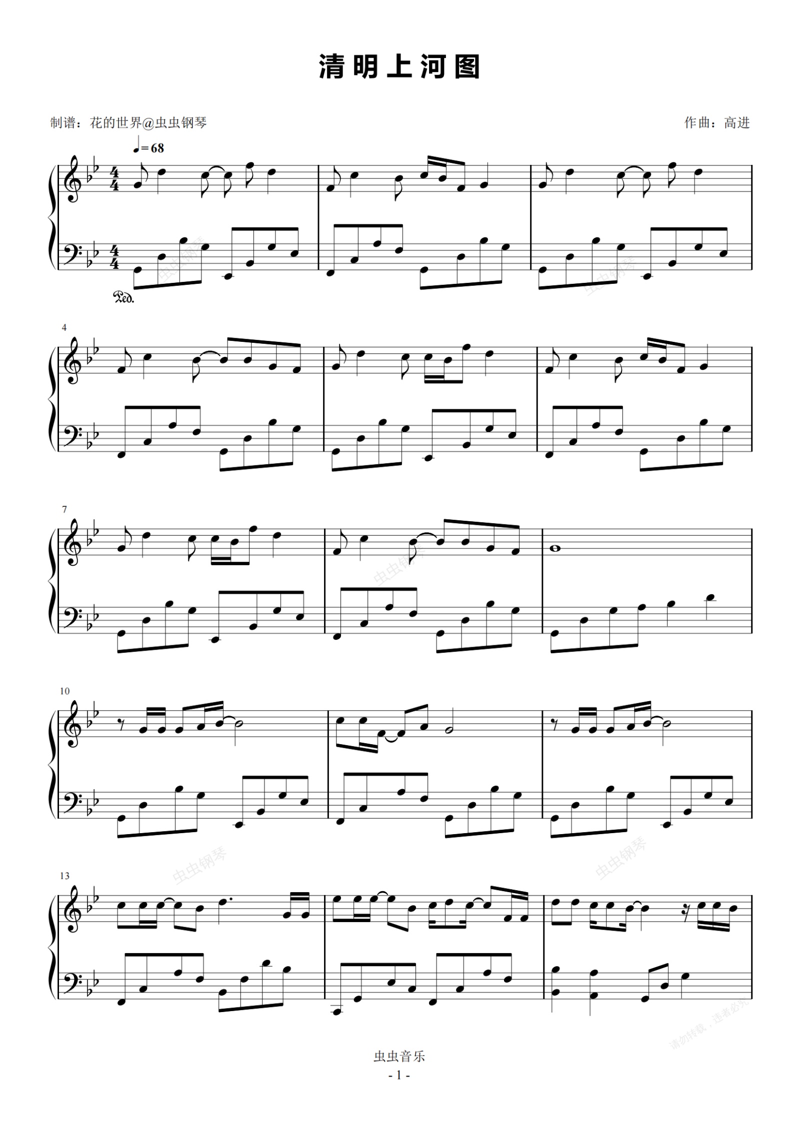 钢琴谱:清明上河图 原调简易版 李玉刚