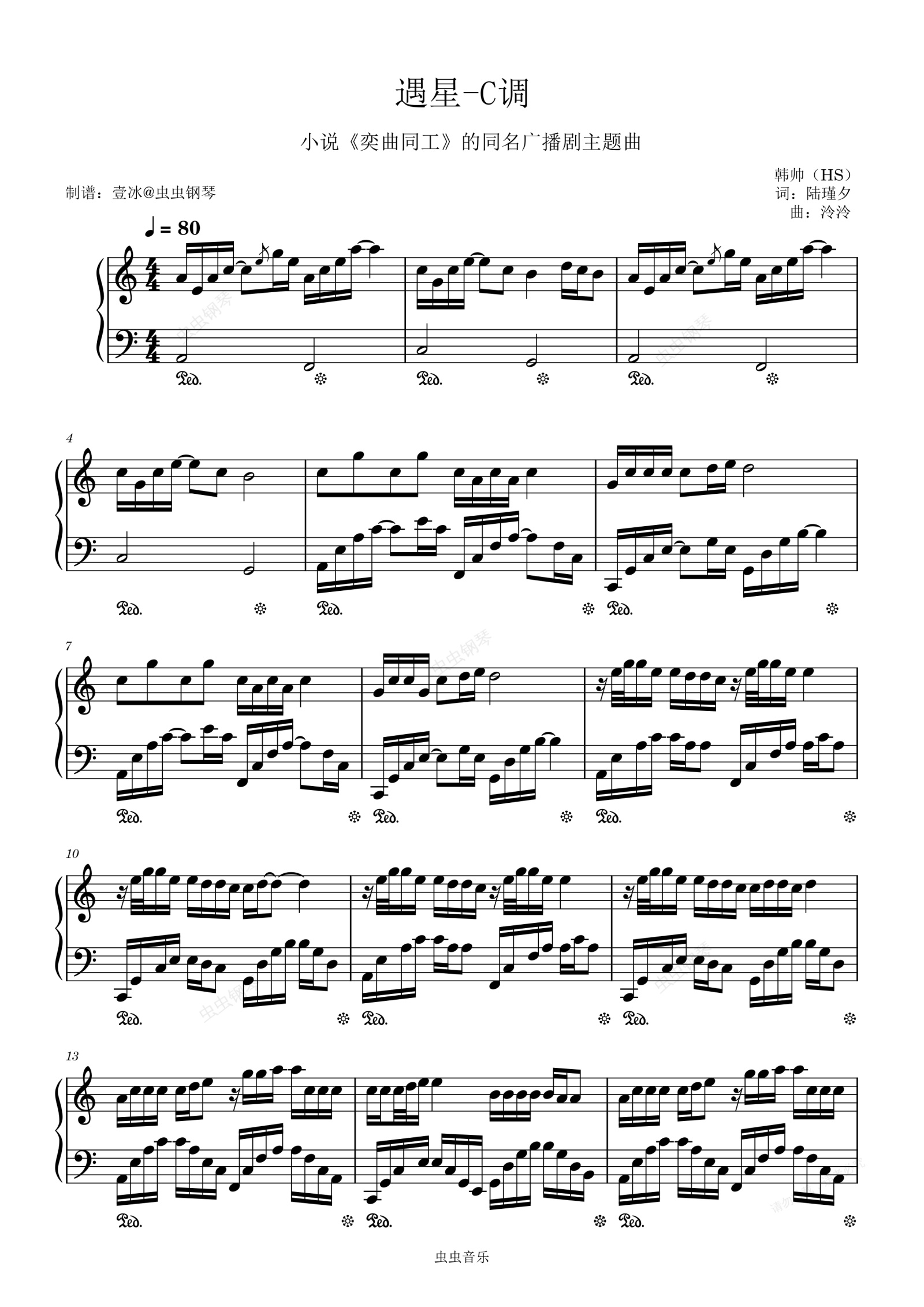 钢琴谱:遇星(纯享版)(《奕曲同工》广播剧主题曲) 简单抒情- C调