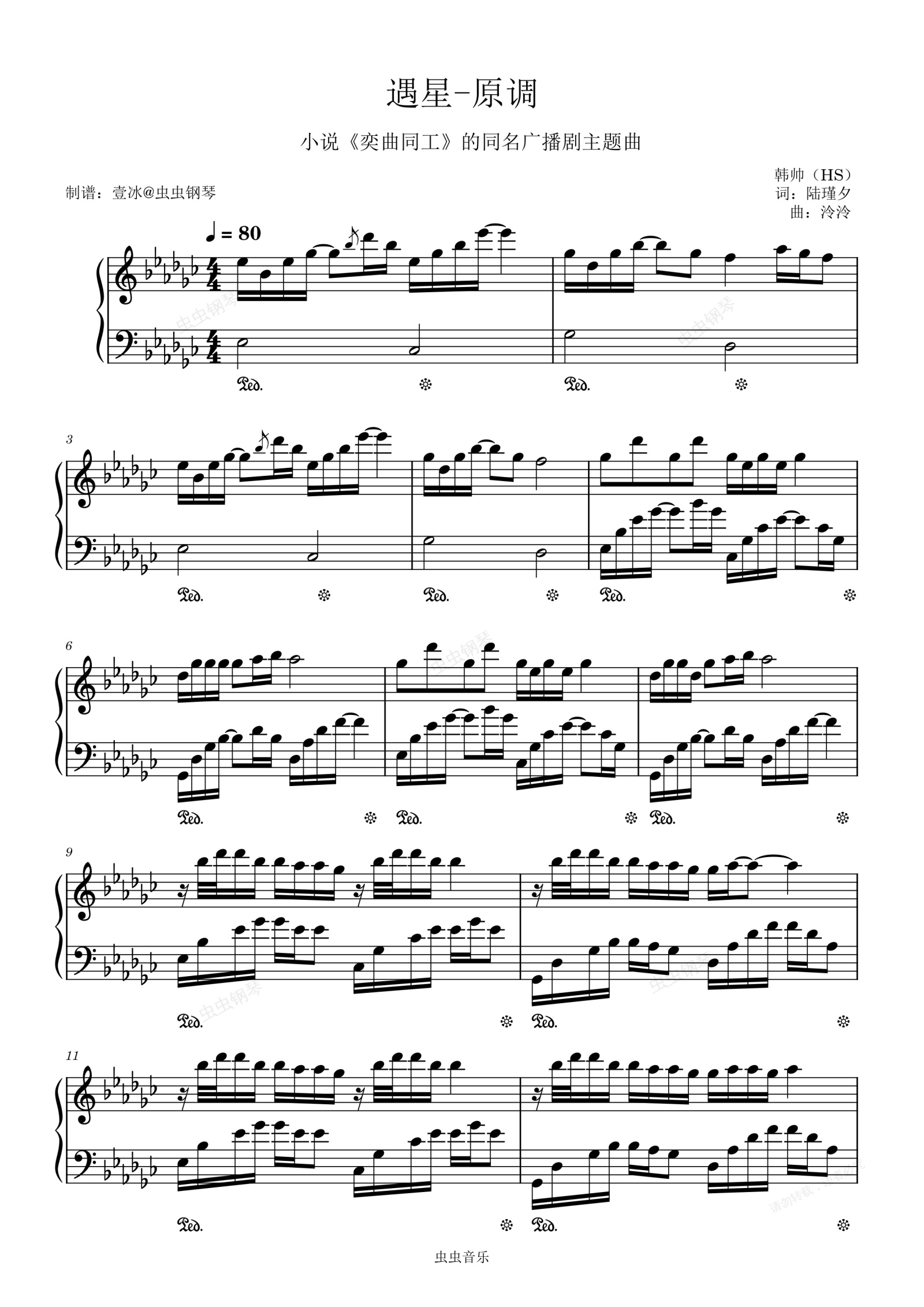 钢琴谱:遇星(纯享版)(《奕曲同工》广播剧主题曲) 简单抒情-原调