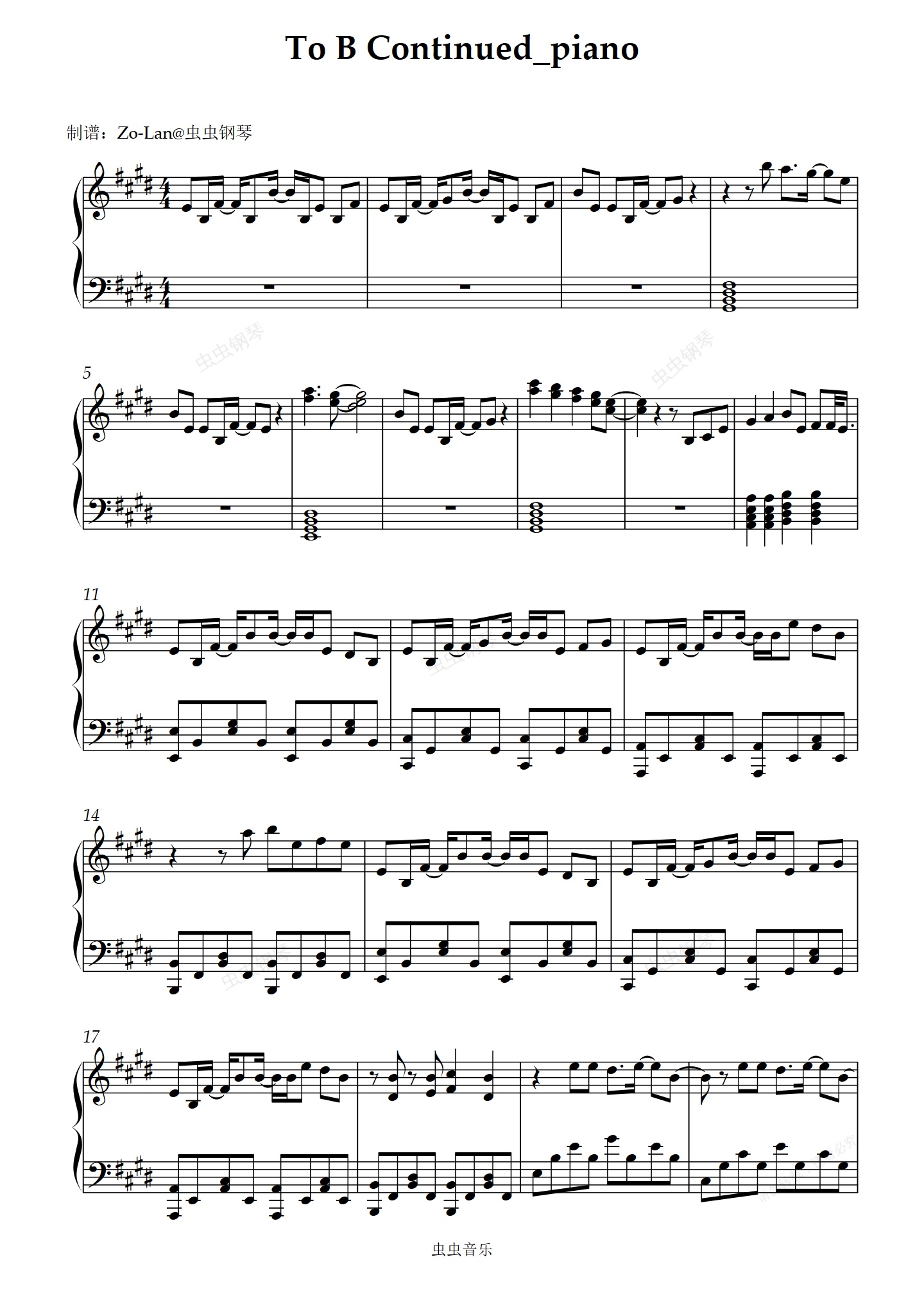 钢琴谱:To B Continued【完整乐谱】