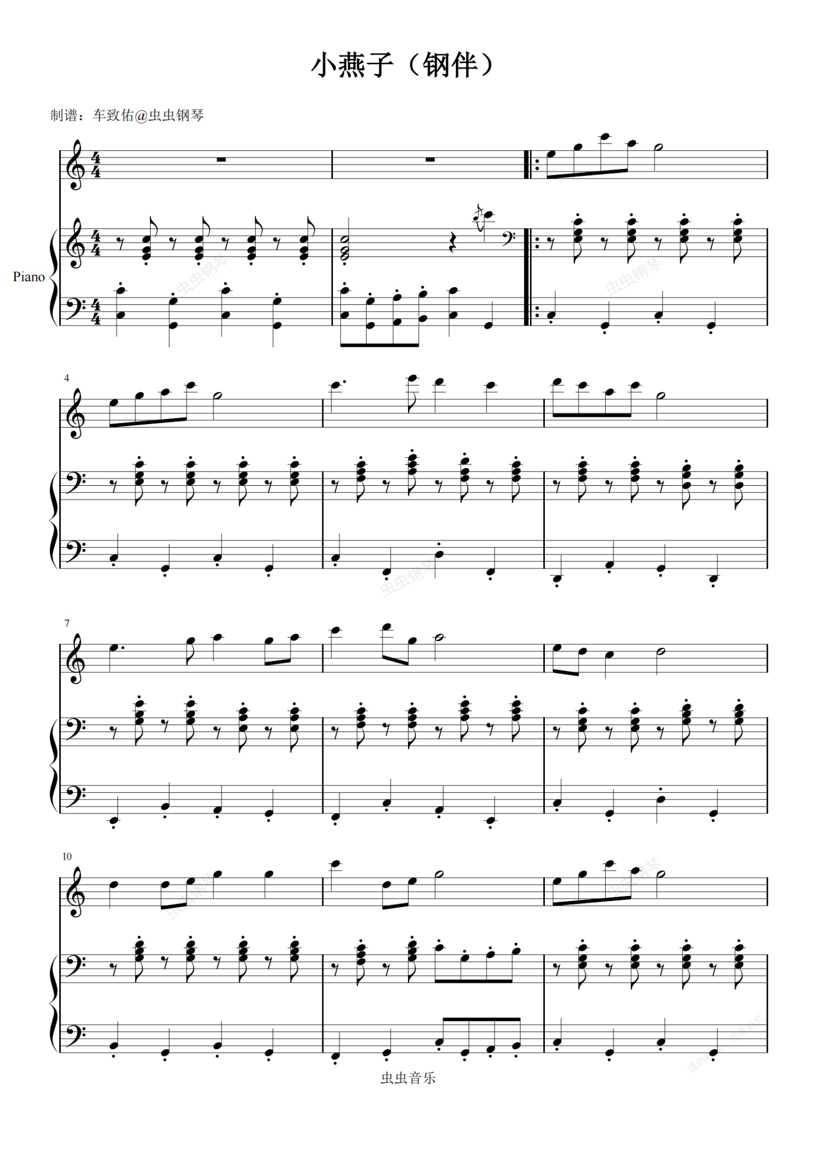 钢琴谱:小燕子(钢琴伴奏)-超简单