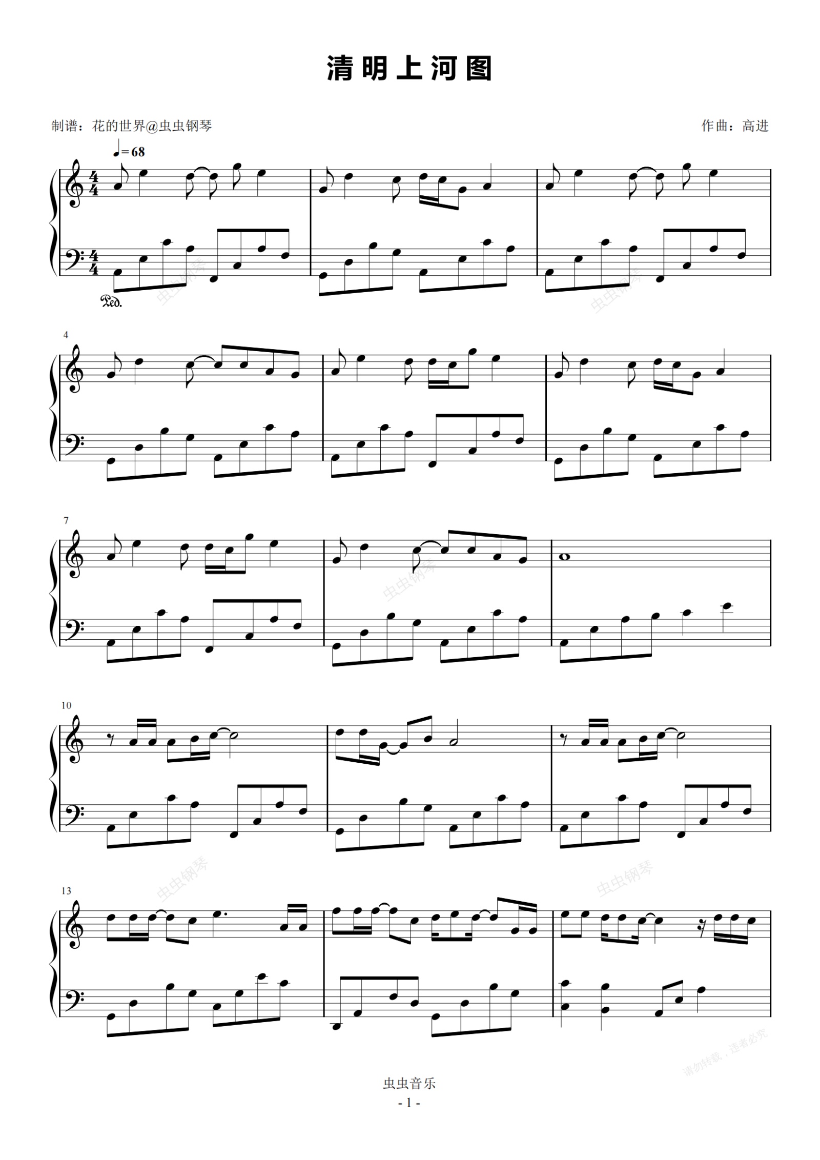 钢琴谱:清明上河图 C调简易版 李玉刚