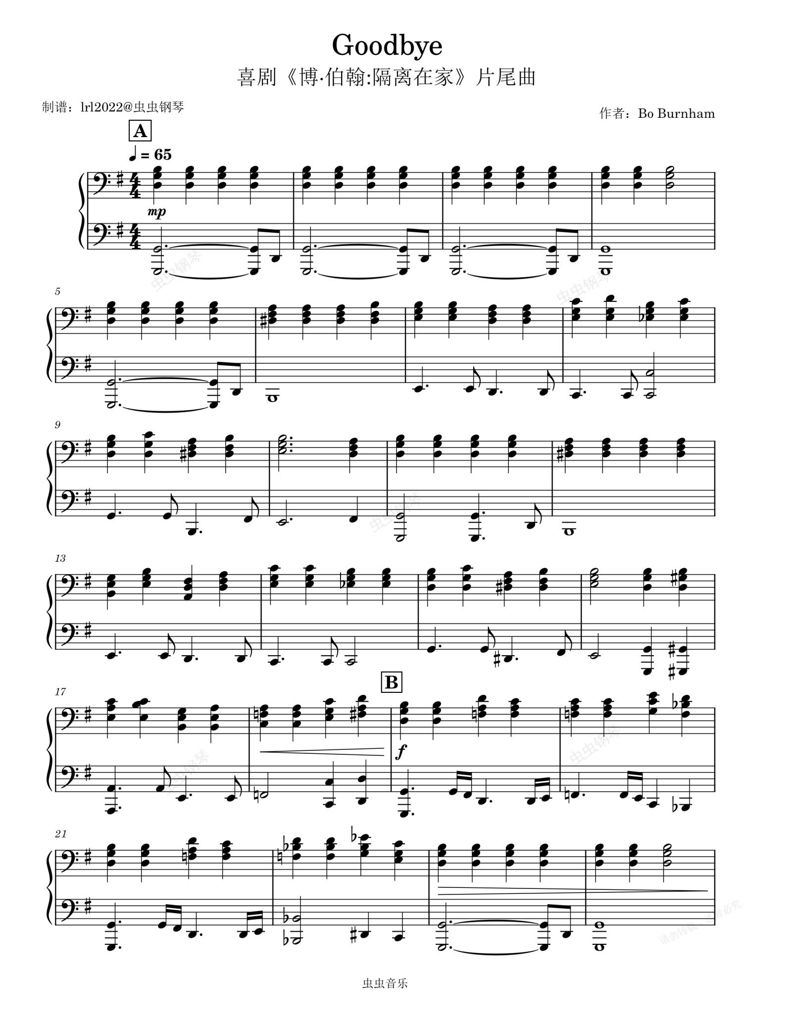 钢琴谱:Goodbye - 喜剧《博·伯翰:隔离在家》片尾曲 - 钢琴独奏