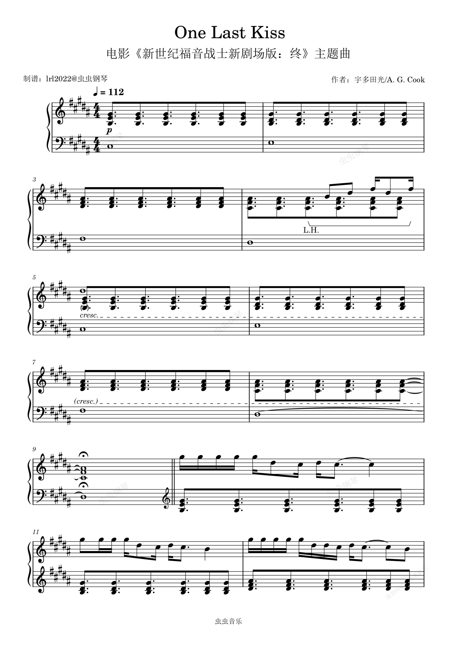 钢琴谱:One Last Kiss - 电影《新世纪福音战士新剧场版:终》主题曲 - 钢琴独奏
