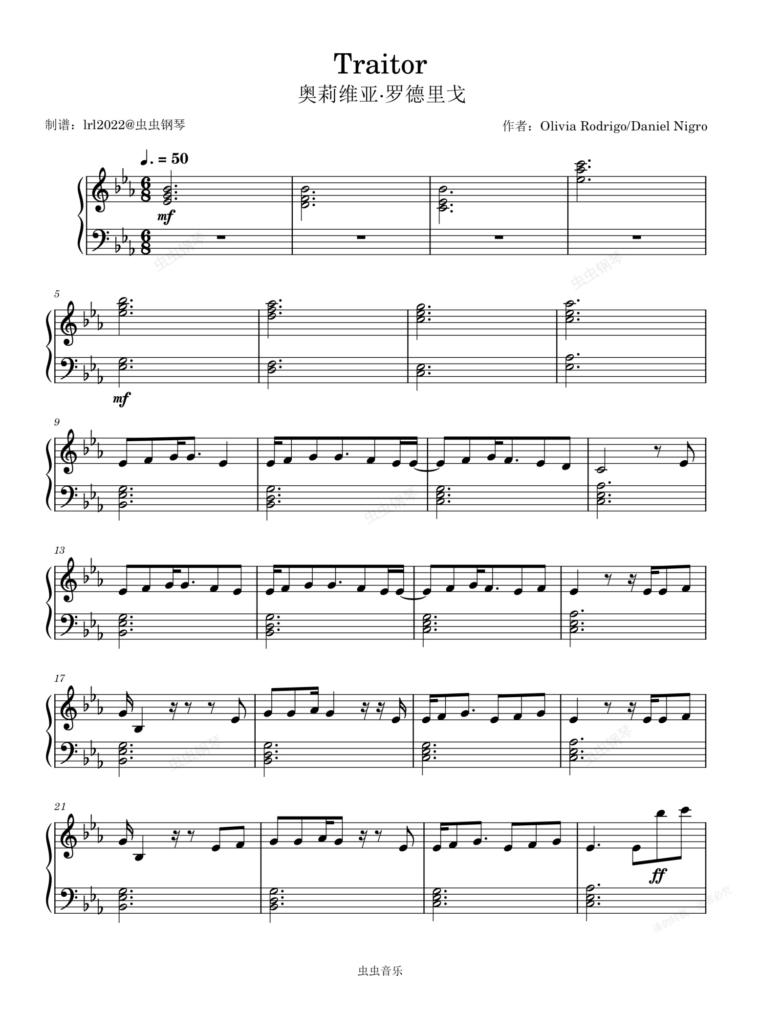 钢琴谱:Traitor – 奥莉维亚·罗德里戈 - 钢琴独奏