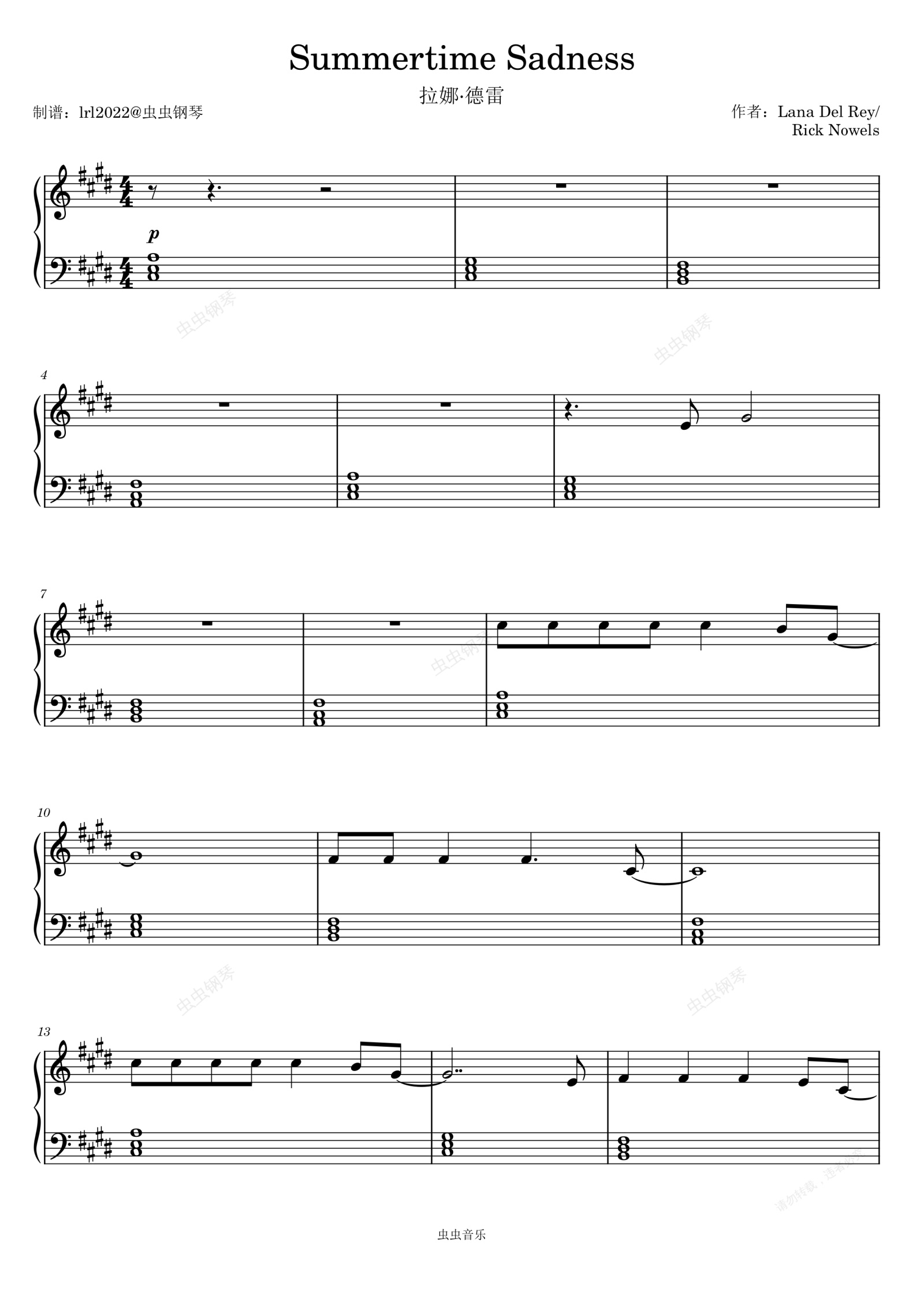 钢琴谱:Summertime Sadness - 拉娜·德雷 - 钢琴独奏