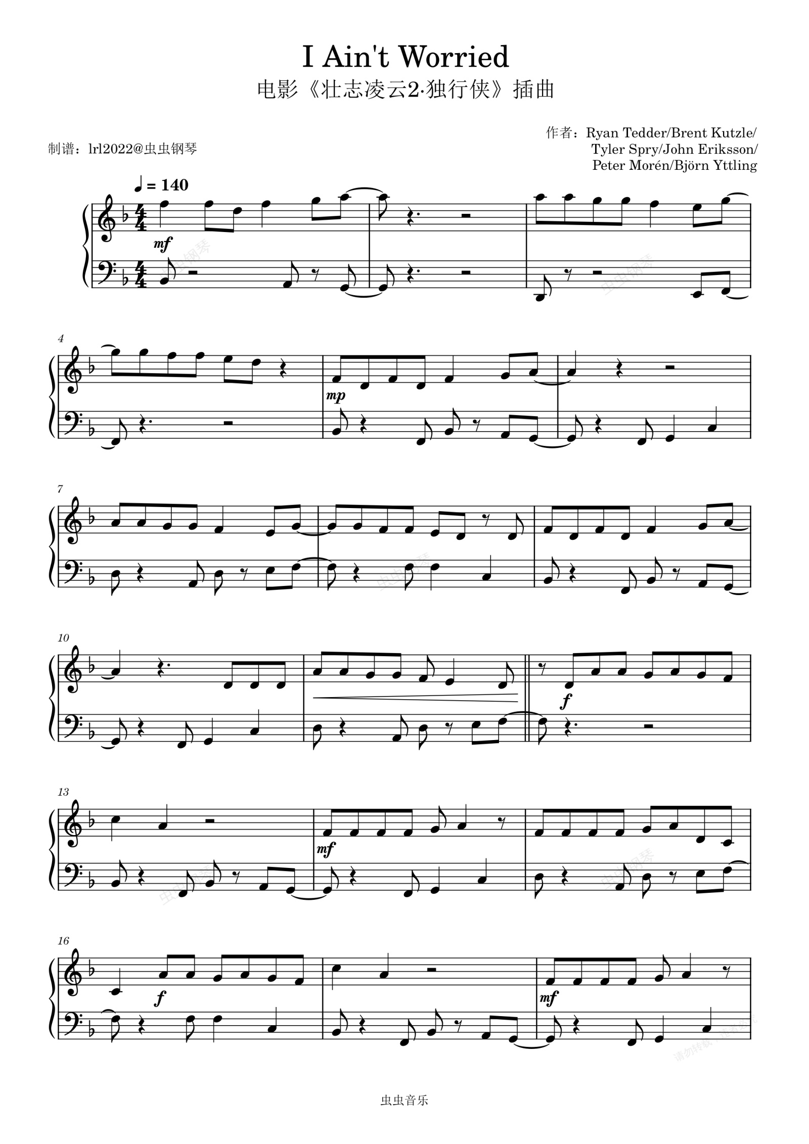 钢琴谱:I Ain't Worried - 电影《壮志凌云2·独行侠》插曲 - 钢琴独奏