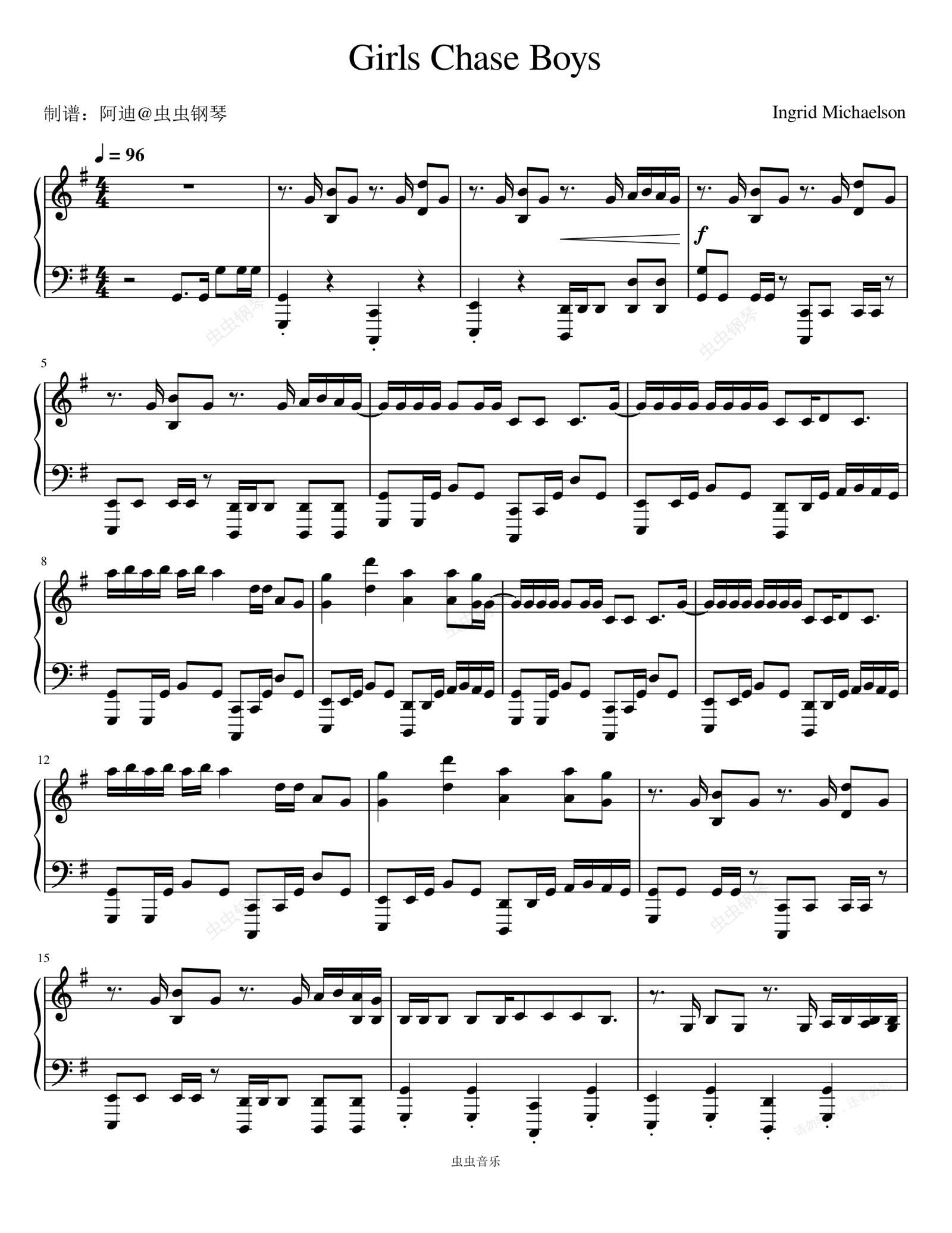 钢琴谱:Girls Chase Boys - Ingrid Michaelson