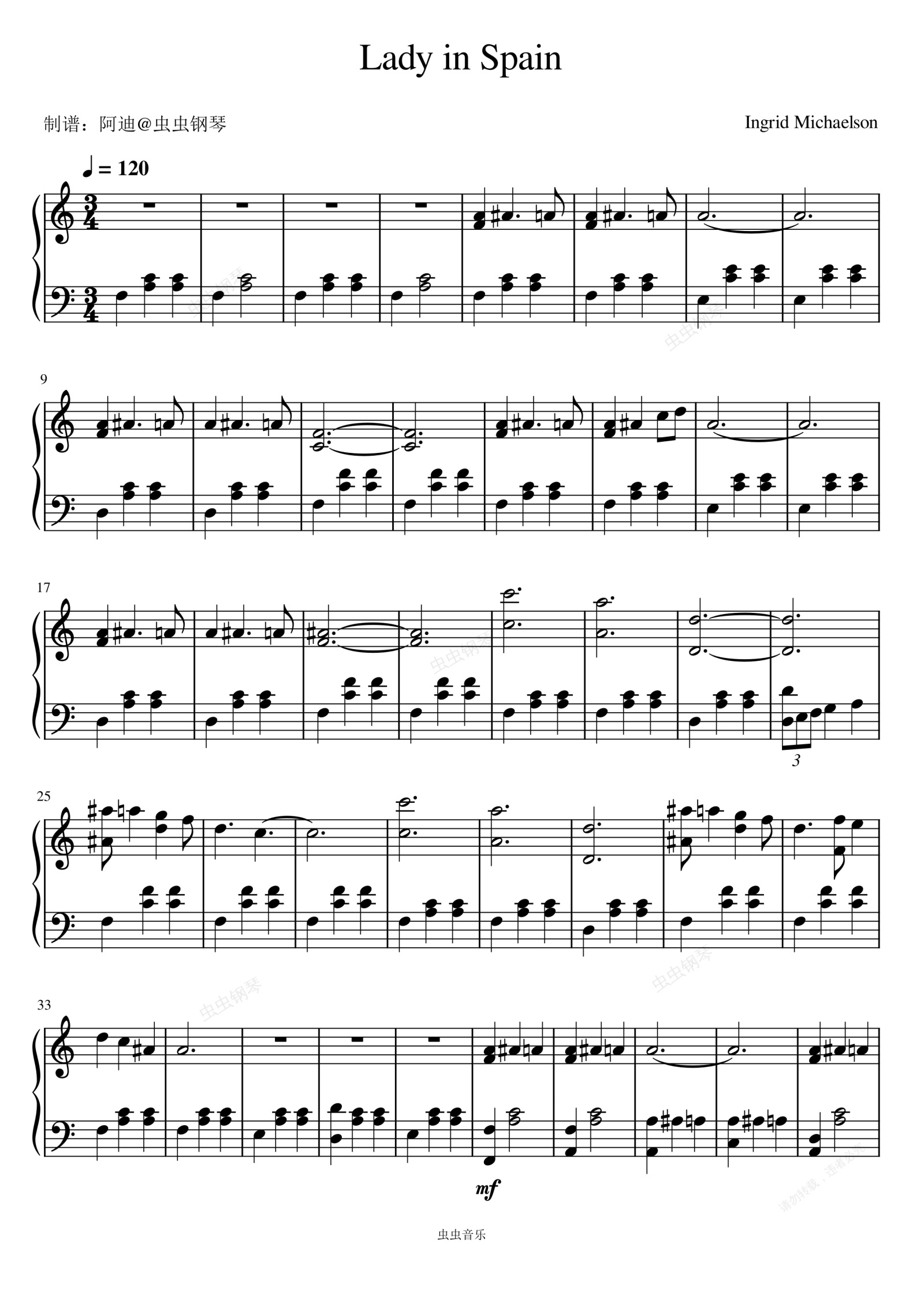 钢琴谱:Lady In Spain - Ingrid Michaelson