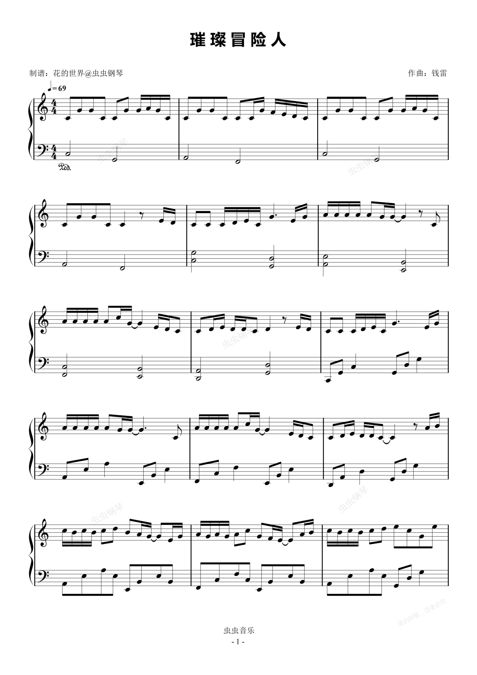 钢琴谱:璀璨冒险人 C调简易版 周深