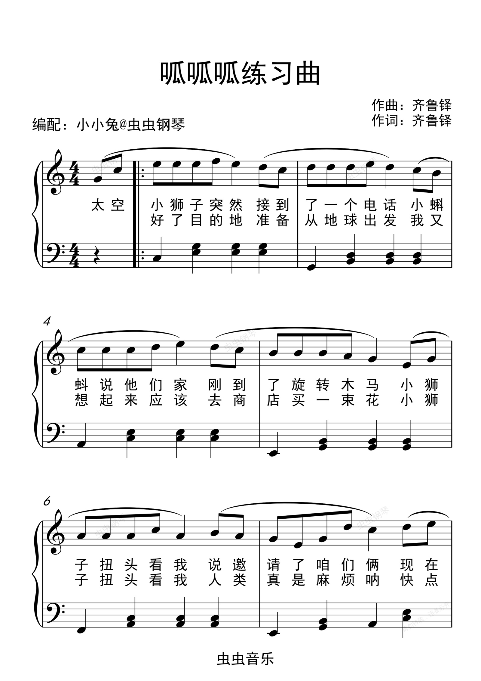 钢琴谱:呱呱呱练习曲 太空小狮子 拜厄