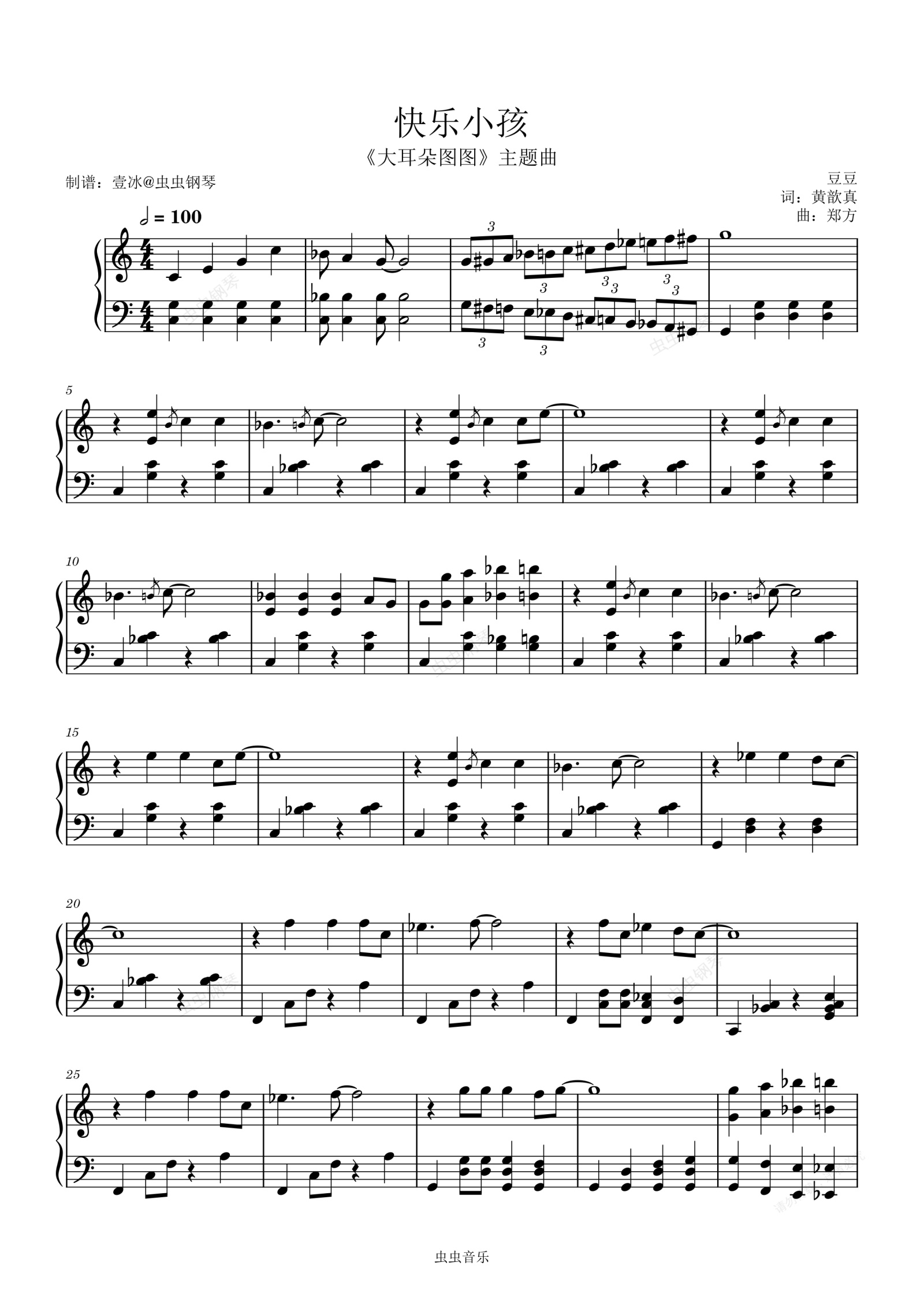 钢琴谱:快乐小孩//《大耳朵图图》主题曲 欢快简单-C调