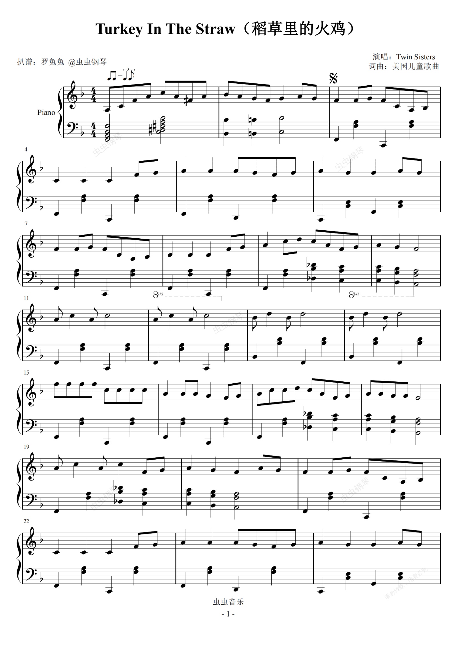 钢琴谱:Turkey In The Straw(稻草里的火鸡)