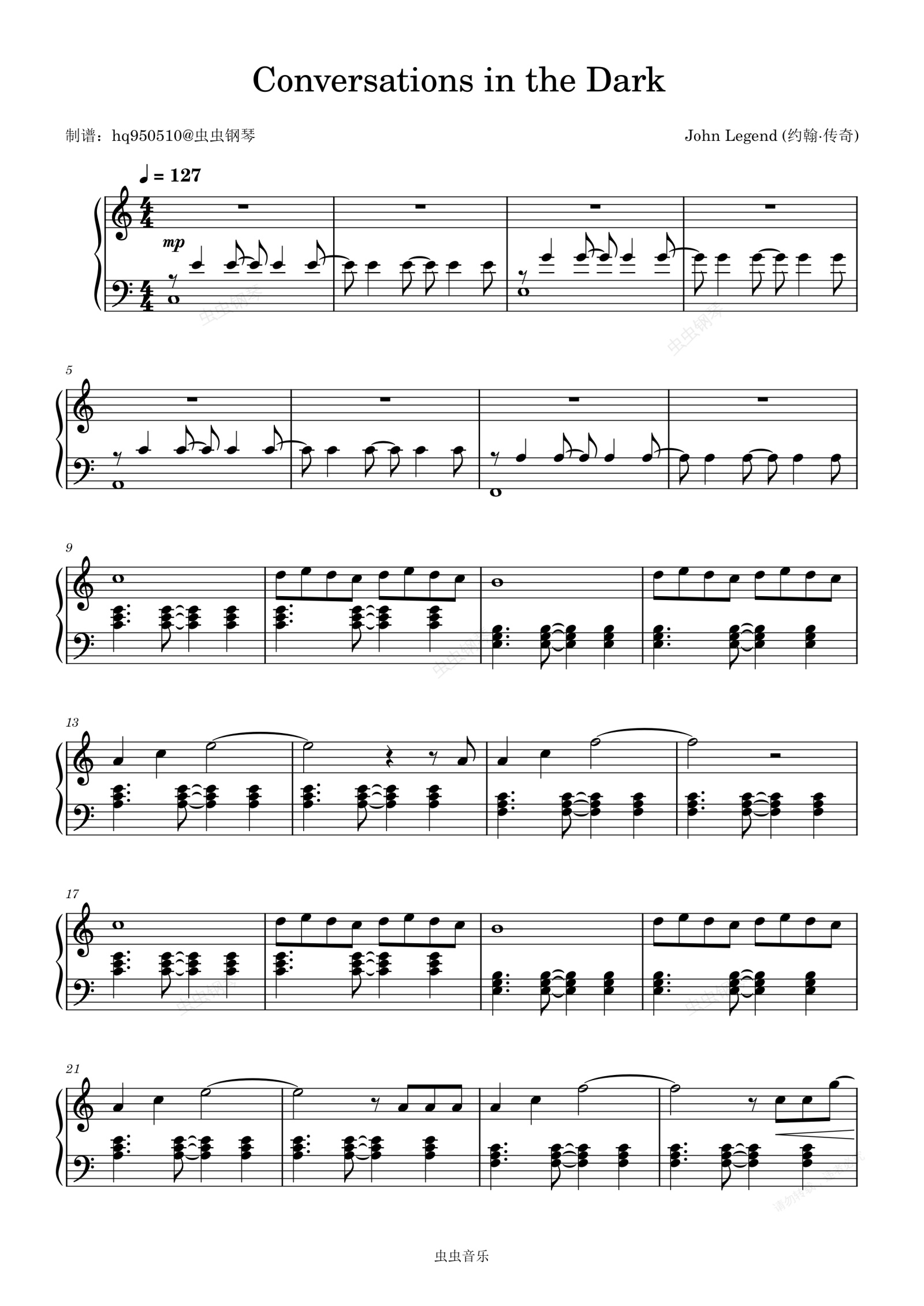 钢琴谱:Conversations in the Dark - John Legend (约翰·传奇)