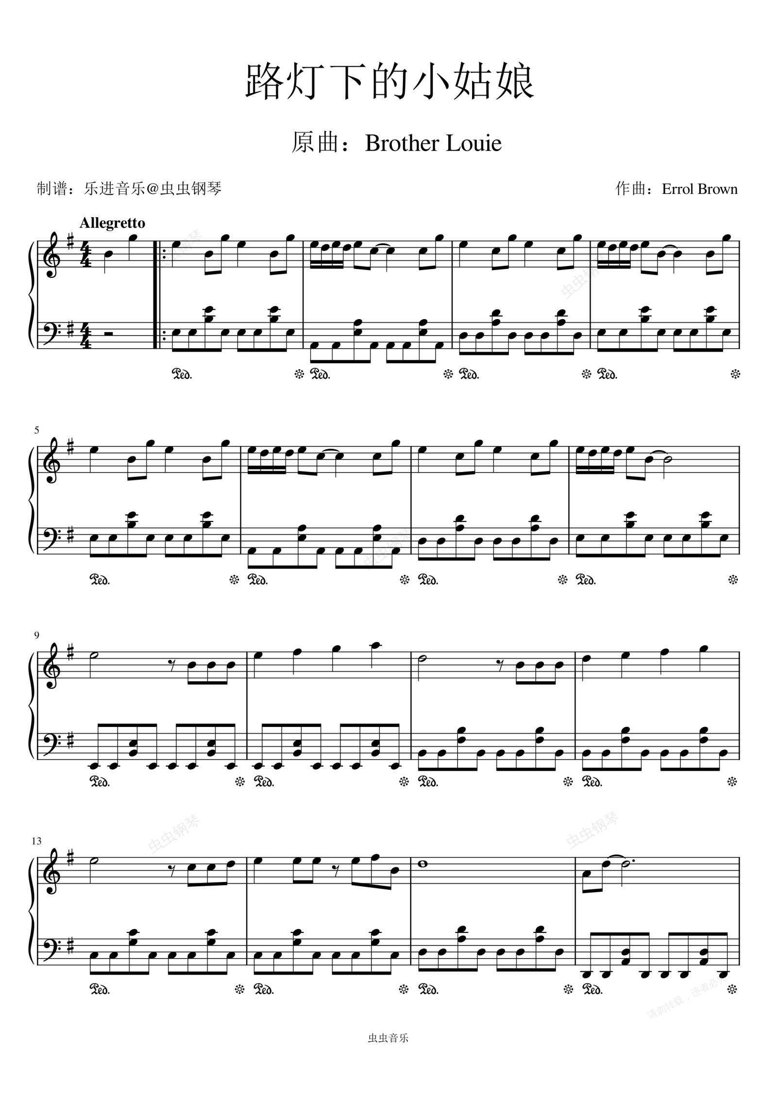 钢琴谱:《路灯下的小姑娘》经典怀旧版