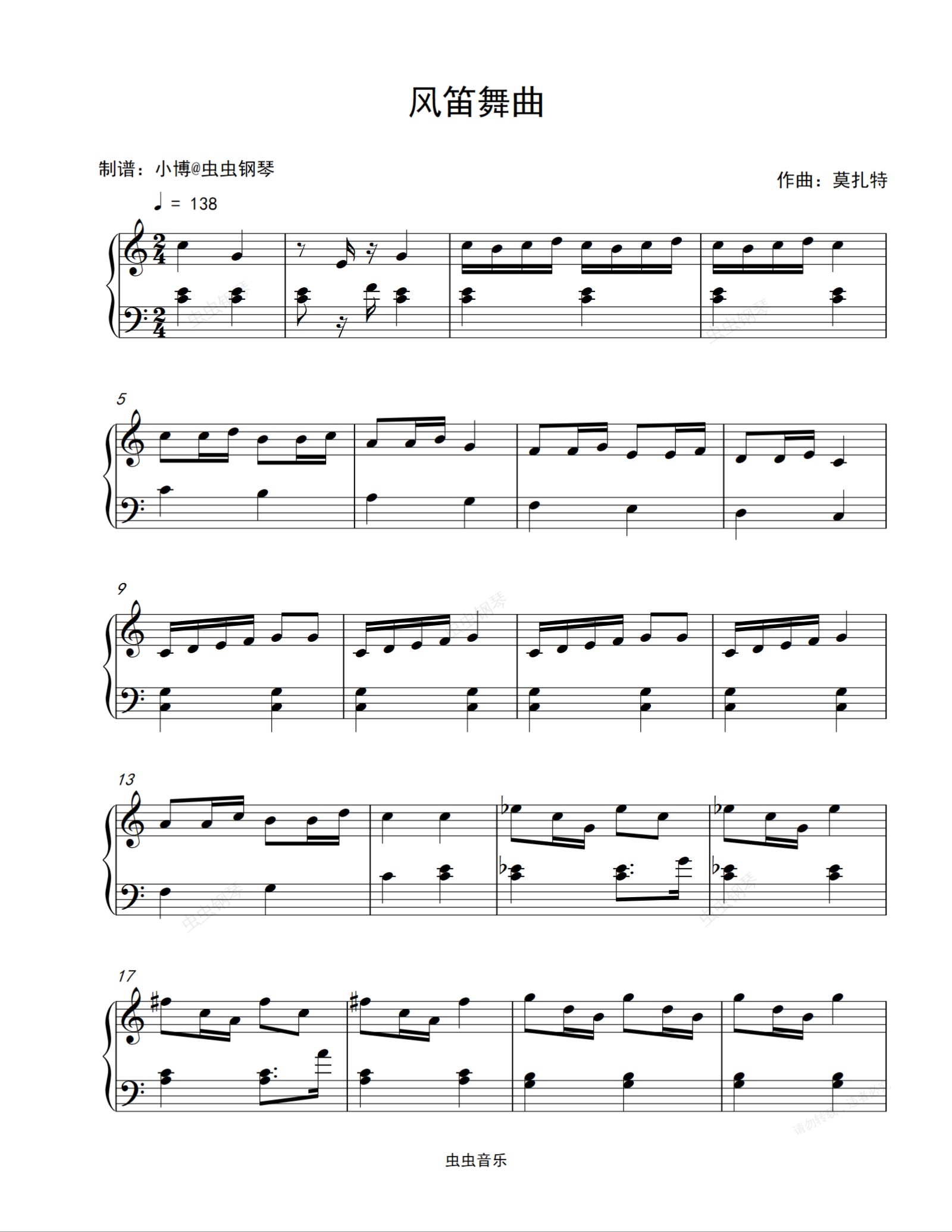 钢琴谱:风笛舞曲-Bagpipe Dance-莫扎特