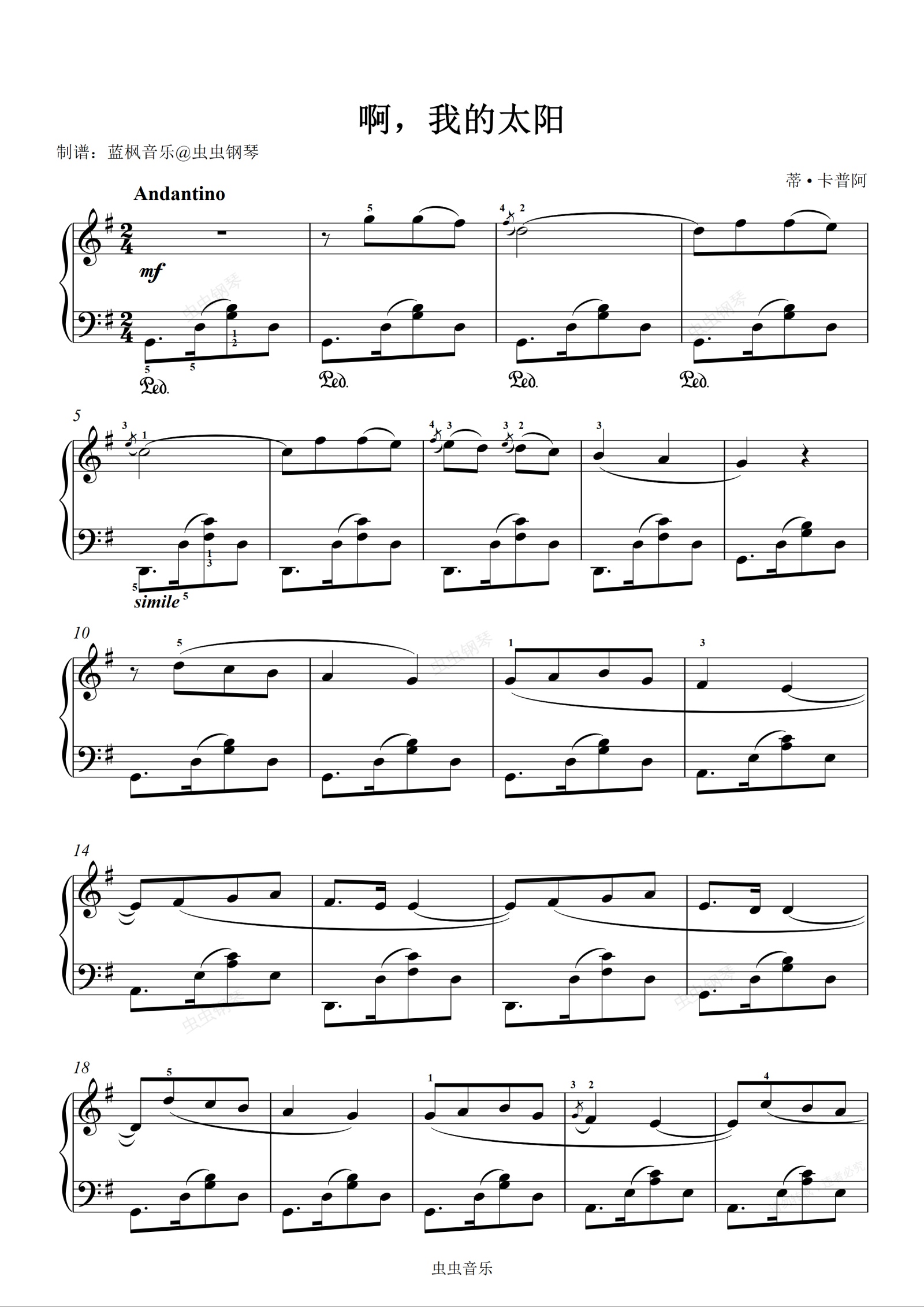钢琴谱:22.啊,我的太阳