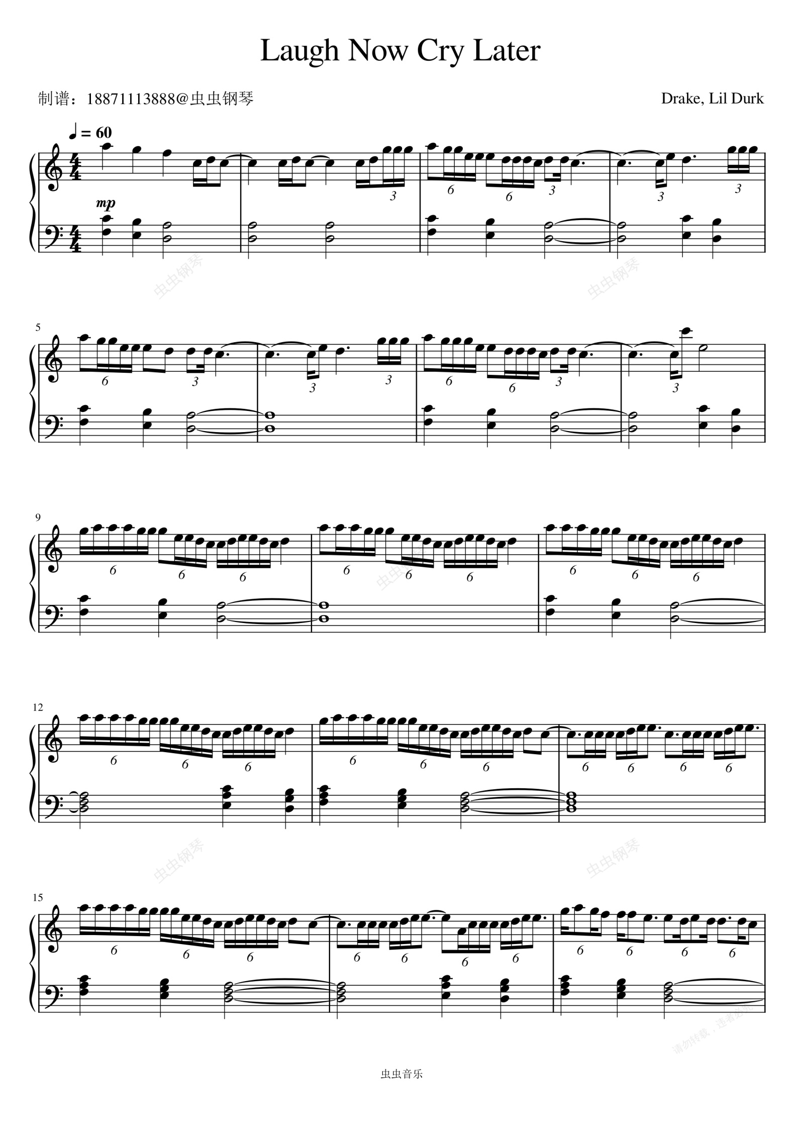 钢琴谱:Laugh Now Cry Later (Explicit) - Drake/Lil Durk
