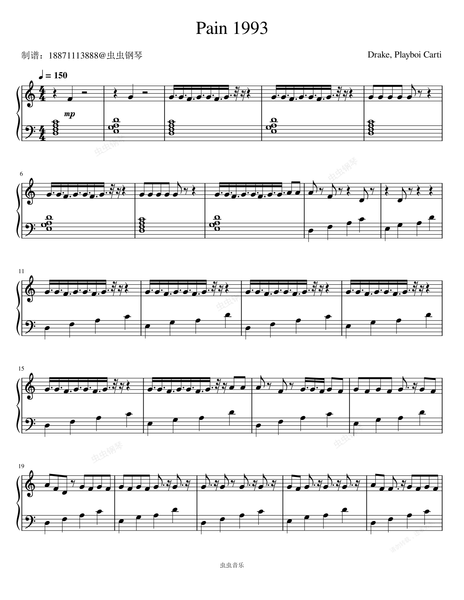 钢琴谱:Pain 1993 (Explicit) - Drake/PLAYBOI CARTI